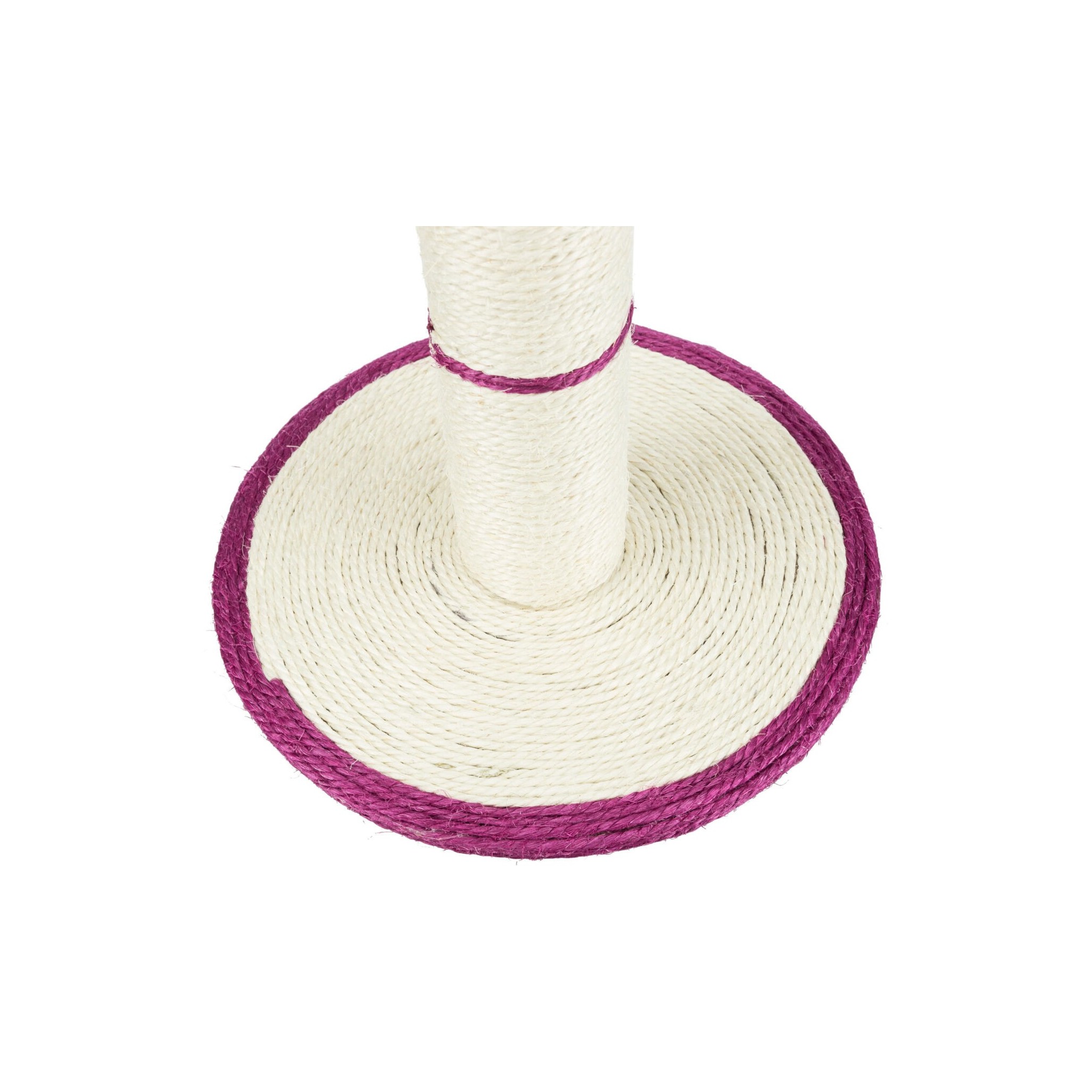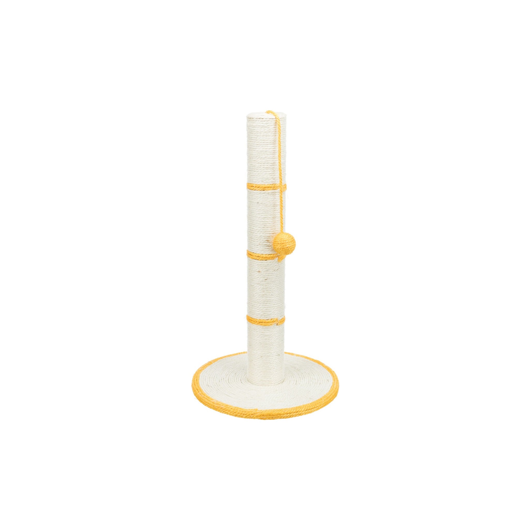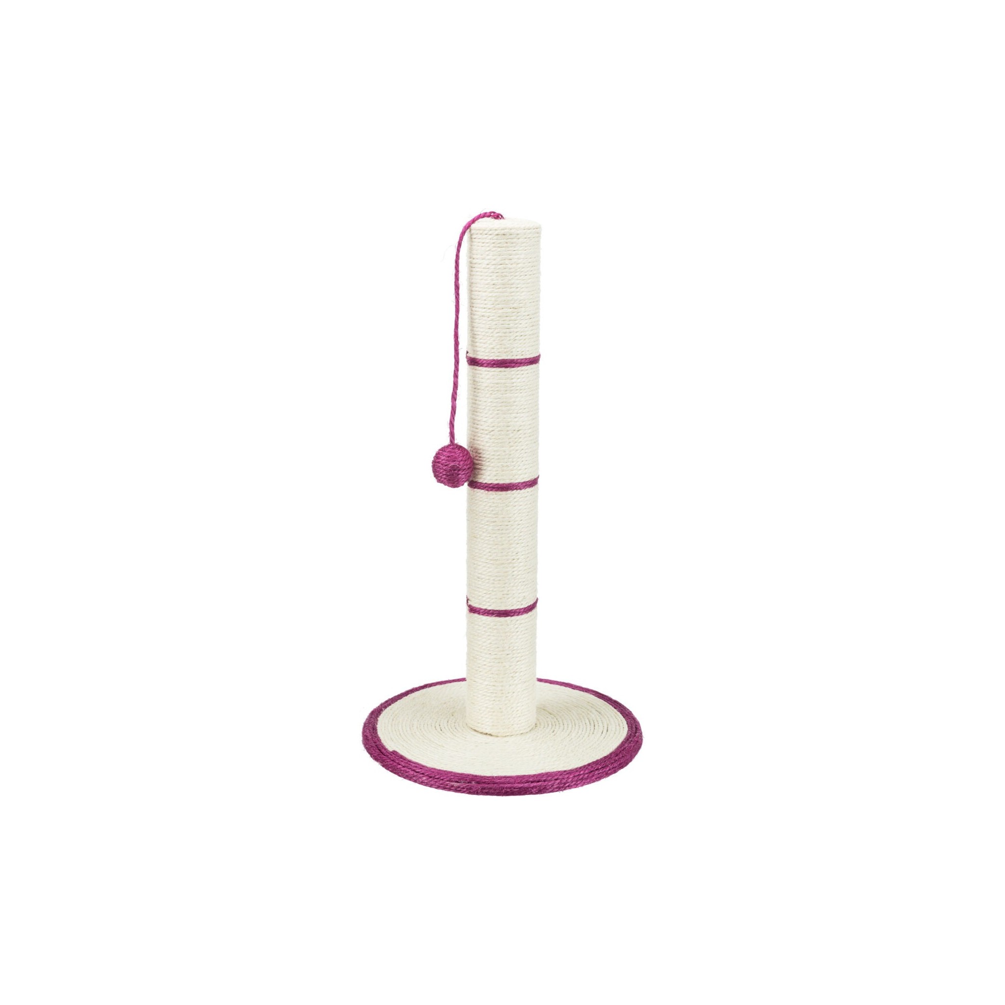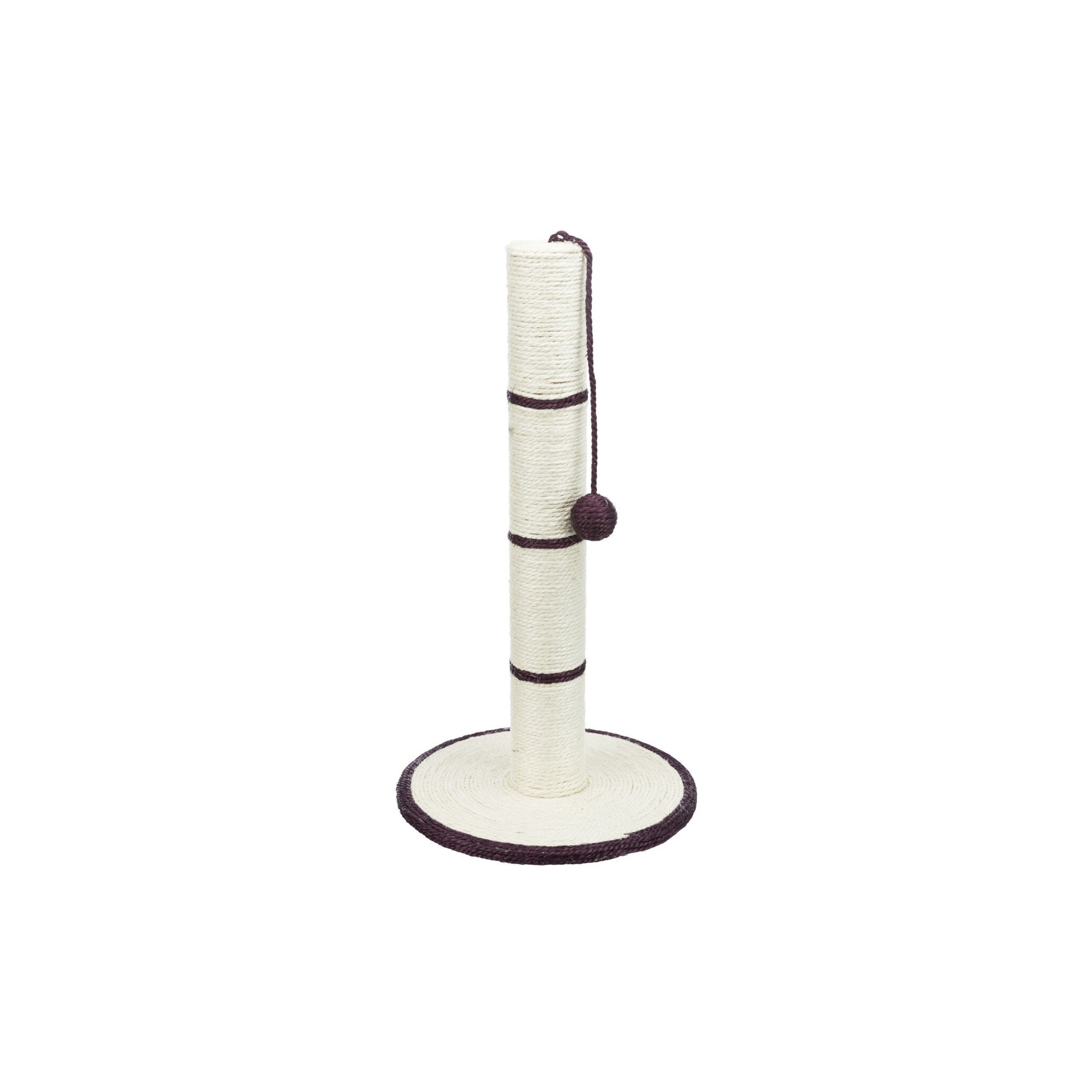 Sizalowy drapak dla kota – duża podstawa i wysoki drążek do którego przyczepiona jest piłeczka na sznurku. Wewnątrz piłki znajduje się grzechotka, która potęguje chęć zabawy u kota. Wymiar drapaka: podstawa: 35cm, 62cm wysokości.