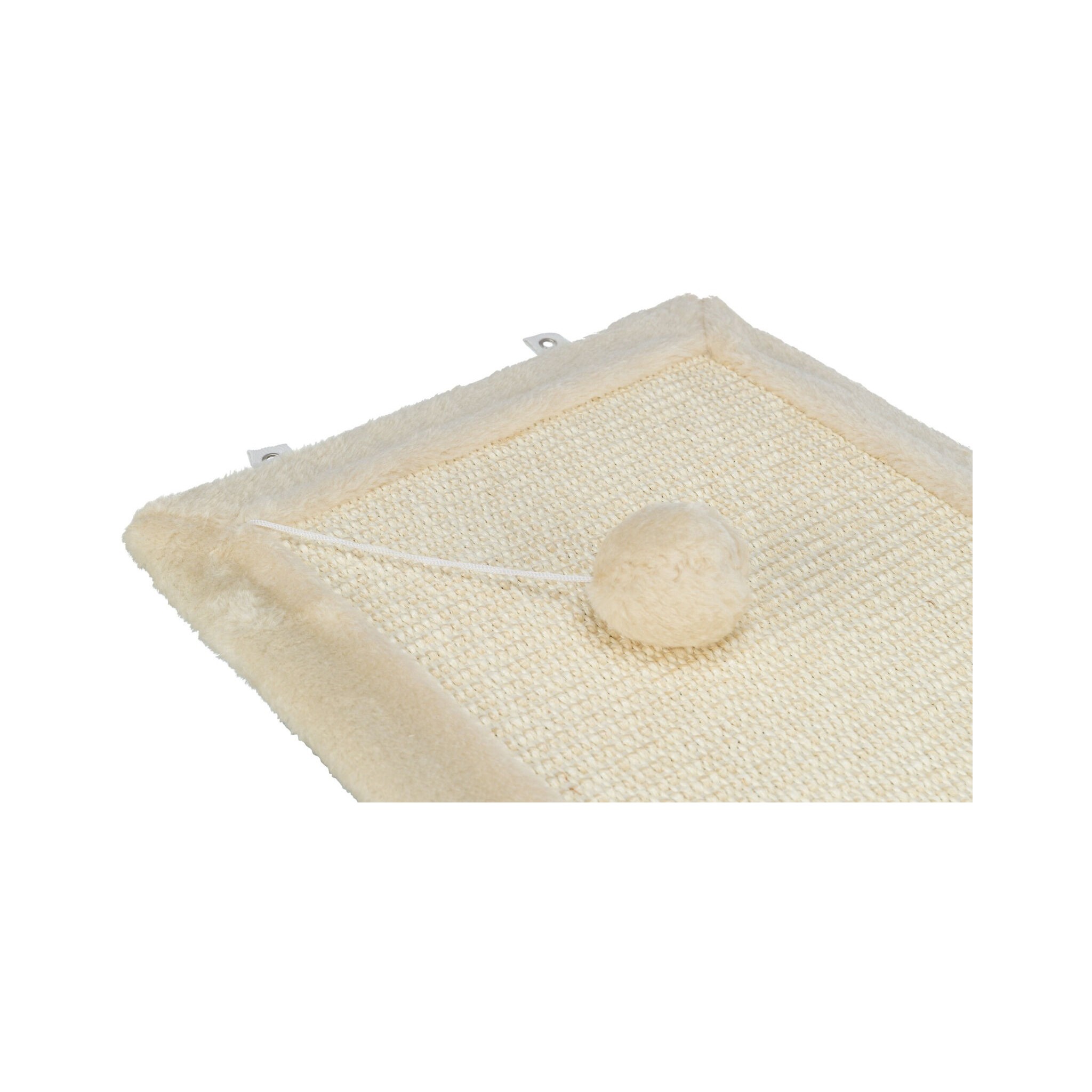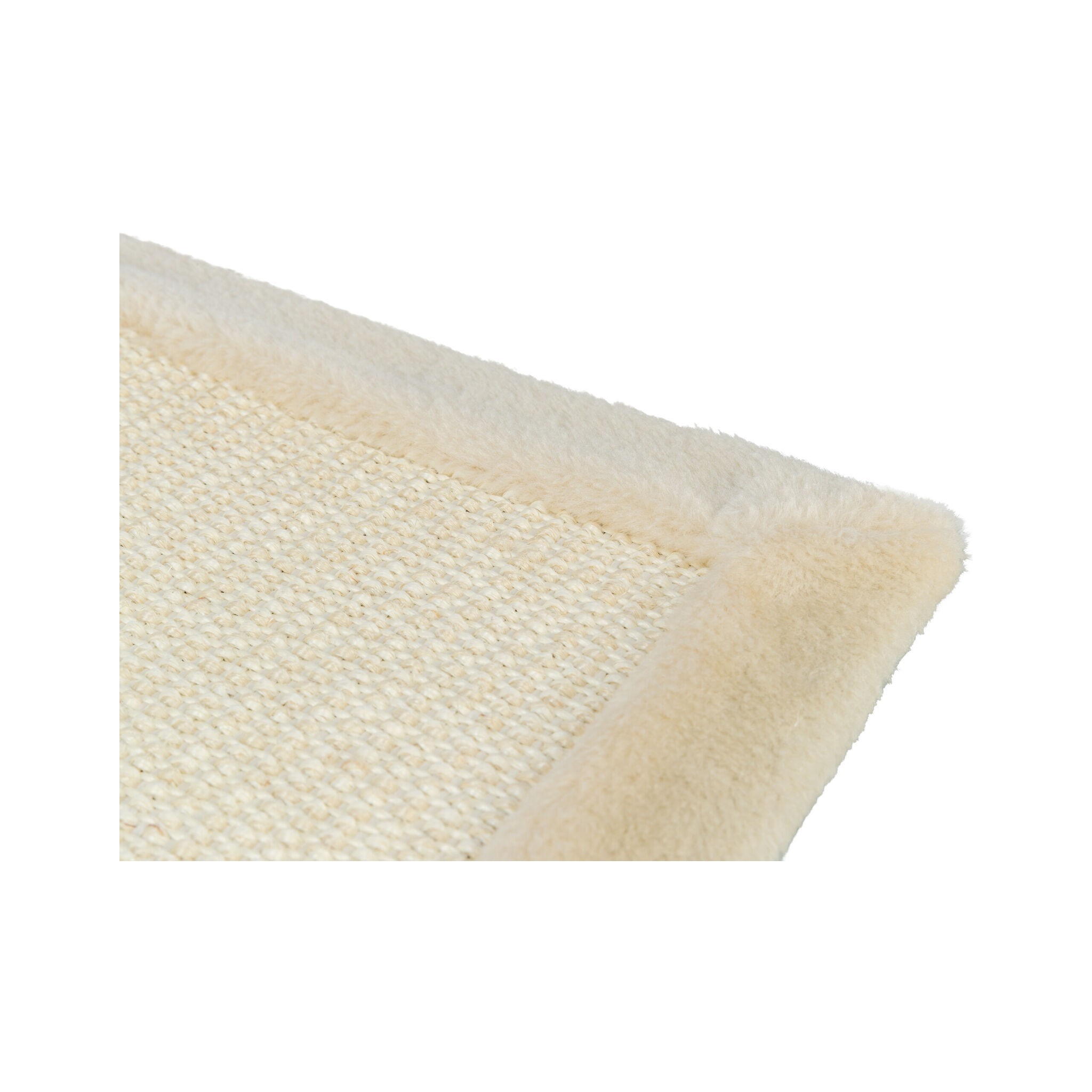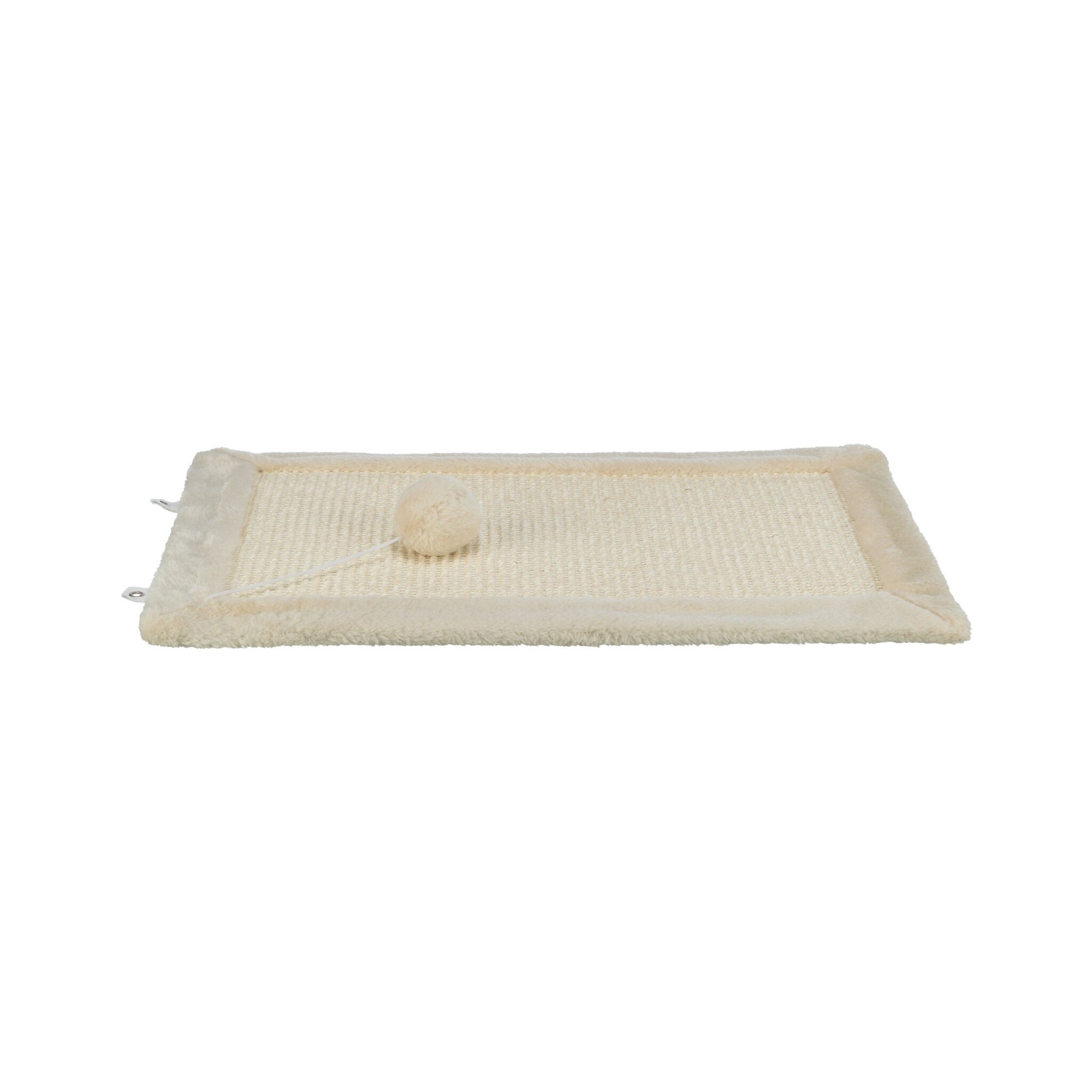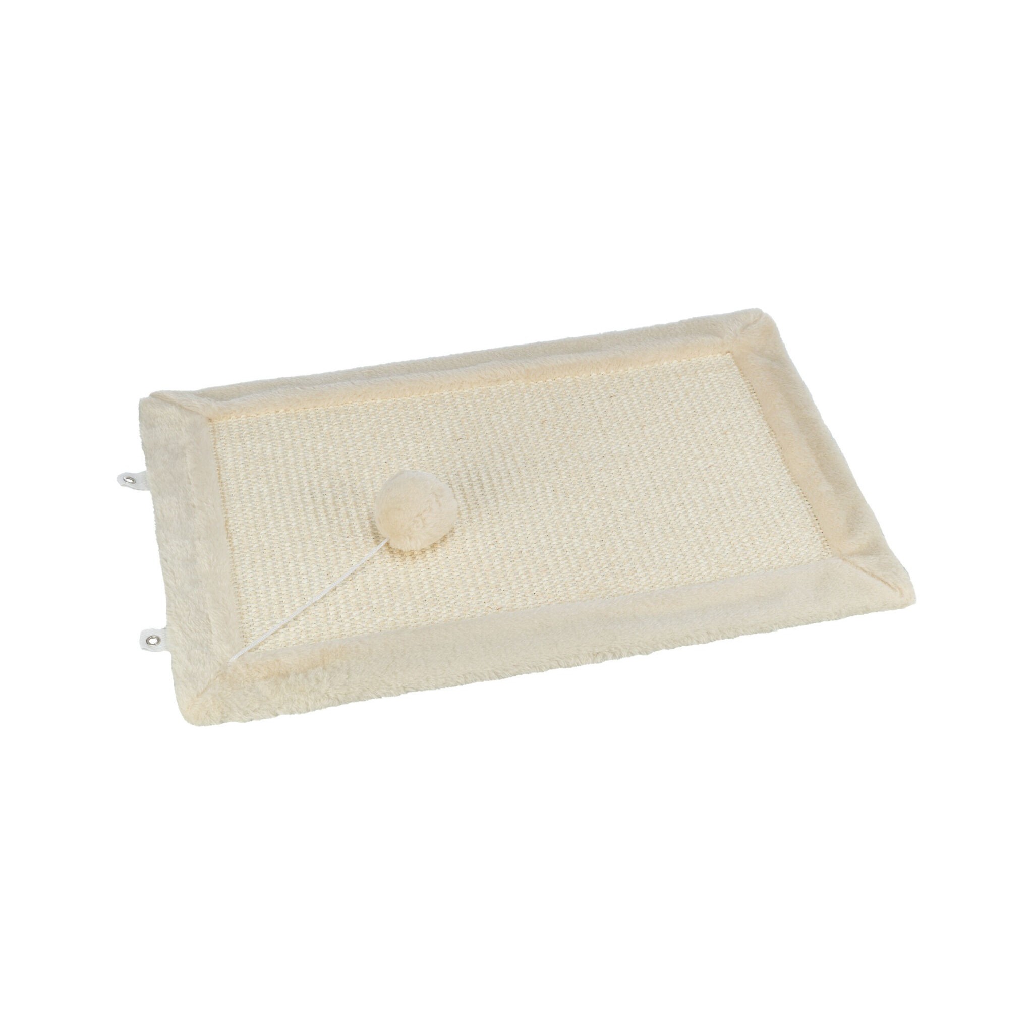 Sizalowy drapak, mata w formie dywaniku. Dywanik wykonany z sizalu, wykończony miłym w dotyku pluszem. Do dywaniku przymocowana jest na elastycznej lince myszka z groszkiem, dzięki której kot będzie bardziej zainteresowany dywanikiem. Wymiary: 55×35cm. Kolor: brązowy.