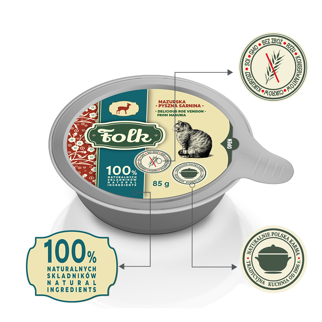 Folk Mazurska sarnina to pełnoporcjowa karma mokra dla dorosłych kotów.