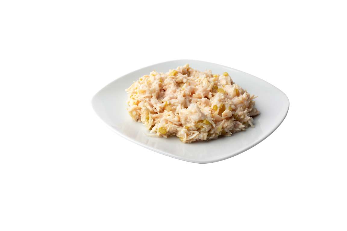 Skład: mięso z kurczaka 60%, szparagi 10%, ryż 2%. Woda do gotowania stanowi 28% składu karmy.