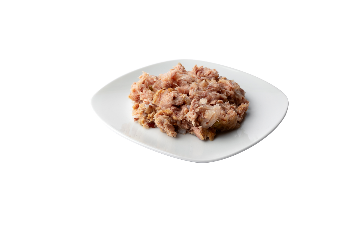 Skład: tuńczyk 44,88%, brązowy ryż 1,18%, cukinia 1%, woda 52,94%.