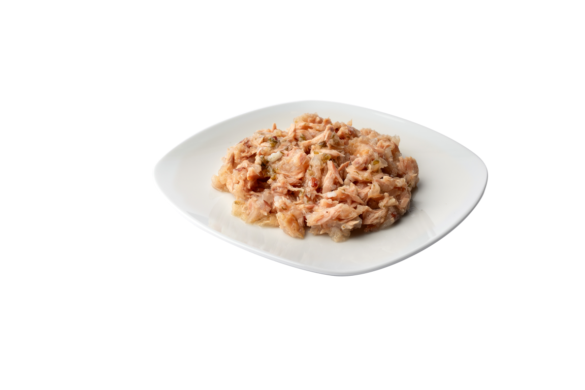 Skład: tuńczyk 44,71%, algi 1,18%, brązowy ryż 1,18%, woda 52,93%.