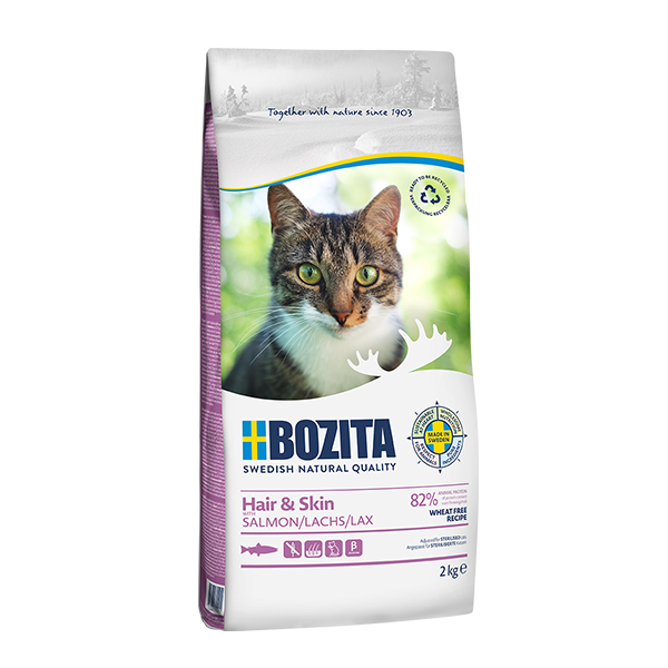 Bozita Hair & Skin to wysokiej jakości receptura bez dodatku pszenicy, oparta na świeżo przygotowanym łososiu. Doskonała smakowitość oraz wysoka przyswajalność sprawiają, że karmę chętnie jedzą nawet najbardziej wybredne koty.