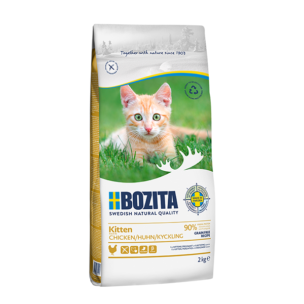 Bozita Kitten to pełnoporcjowa, bezzbożowa formuła stworzona z myślą o intensywnym wzroście kociąt oraz o szczególnych potrzebach kotek w ciąży i okresie laktacji. Wysoka koncentracja energii i białka gwarantuje harmonijną budowę mięśni i witalność każdego dnia.