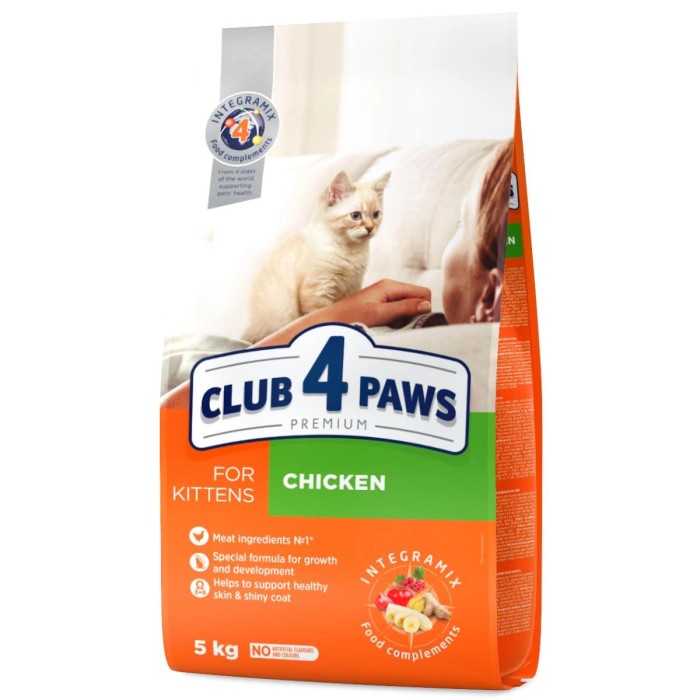 Club 4 Paws Kitten Chicken to pełnoporcjowa sucha karma stworzona specjalnie dla kociąt w pierwszym roku życia. Dzięki wysokiej zawartości składników mięsnych i starannie dobranym dodatkom wspiera prawidłowy rozwój, odporność i witalność młodego organizmu.