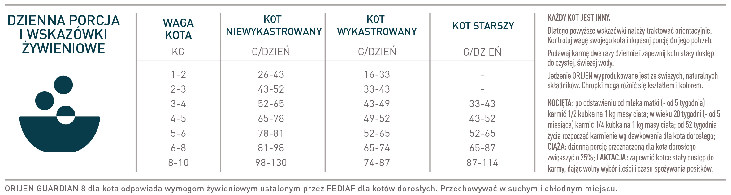 Orijen Guardian 8 to pełnoporcjowa sucha karma dla kotów dorosłych wszystkich ras.