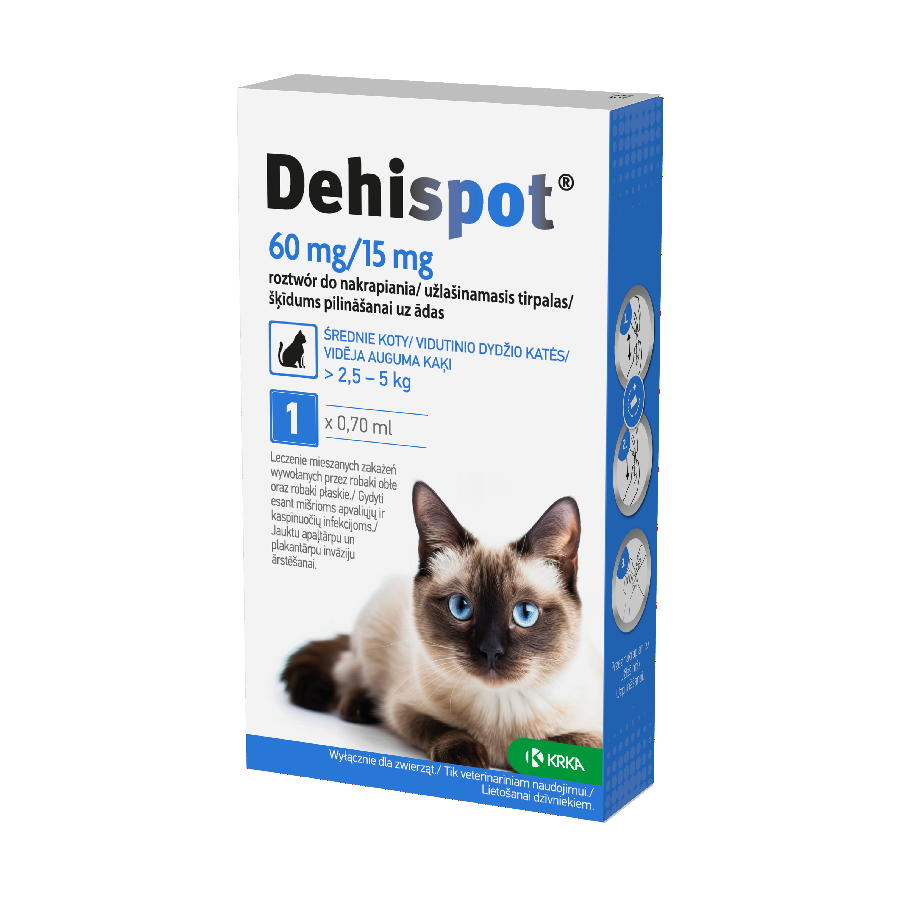 Dehispot to roztwór (przejrzysty, o kolorze bezbarwnym do żółtego lub brązowego) do zwalczania tasiemców i nicieni.