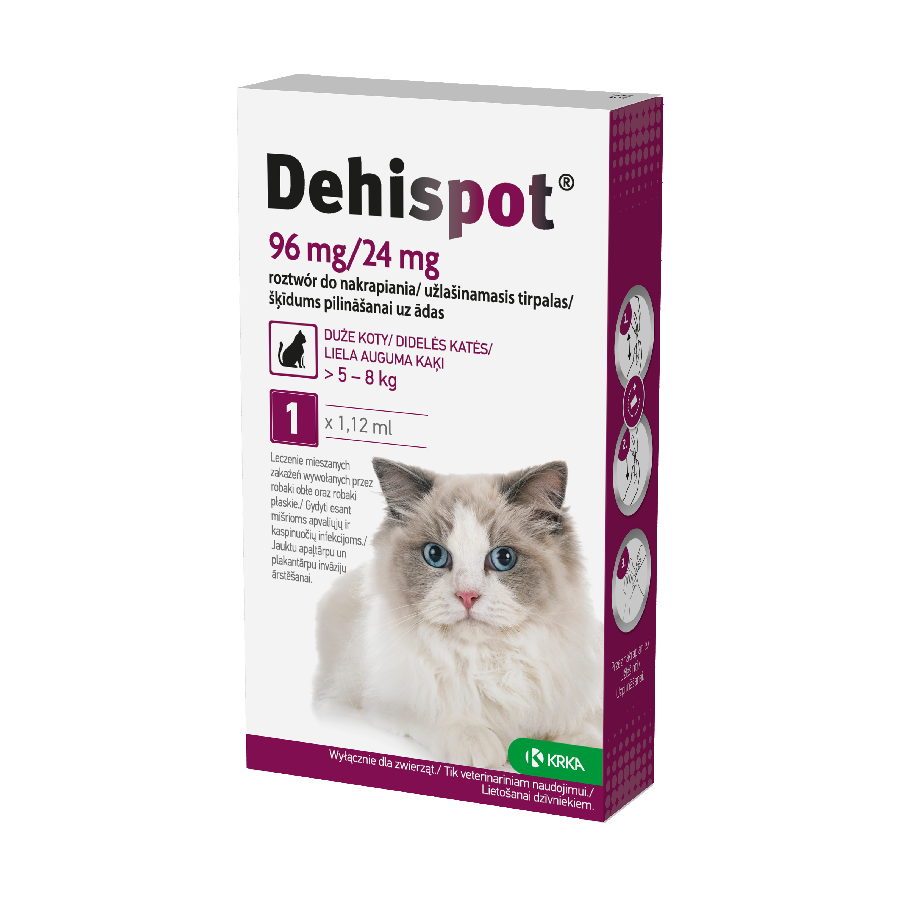 Dehispot to roztwór (przejrzysty, o kolorze bezbarwnym do żółtego lub brązowego) do zwalczania tasiemców i nicieni.
