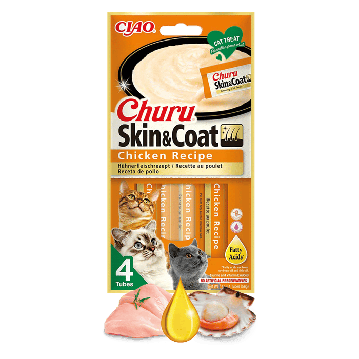 Niskokaloryczna przekąska nie zawiera zbóż, konserwantów i sztucznych barwników. Kremowa konsystencja jest uwielbiana przez koty. Churu jest również dodatkową porcją wody dla kotów mało pijących. Przysmak dostarcza 1/10 kalorii zawartych w suchych przysmakach. Produkt jest całkowicie bezzbożowy oraz wolny od konserwantów i sztucznych barwników.