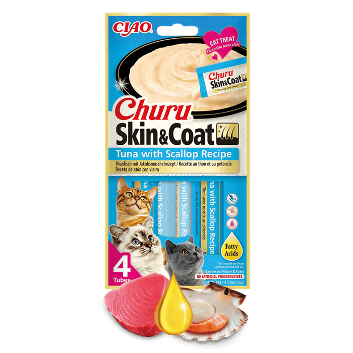 Przysmaki dla kota na skórę i sierść; tuńczyk z przegrzebkami
