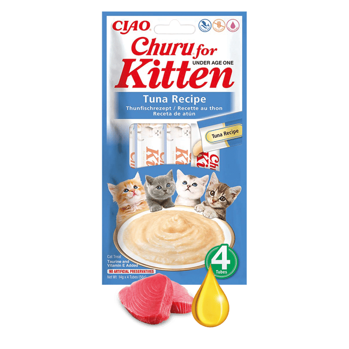 Churu to kremowy przysmak dla kociąt prosto z Japonii. Smaczna i zdrowa przekąska produkowana ze składników najwyższej jakości “human grade” czyli jakość składników jest odpowiednia do spożycia przez ludzi. Wersja dla kociąt została wzbogacona o DHA i EPA z oleju rybnego, które mają za zadanie wspierać prawidłowy rozwój mózgu młodych zwierząt. Z dodatkiem tauryny, która jest kluczowym aminokwasem potrzebnym kociętom do utrzymania prawidłowego wzroku, pracy serca i nerwów.