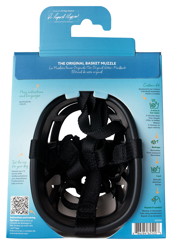Baskerville Ultra Muzzle to kaganiec fizjologiczny wykonany z miękkiej i trwałej gumy podatnej na wygięcia. Posiada dwa dodatkowe punkty bezpiecznego przywiązania – pętla na dole, która jest przeznaczona do zamocowania do obroży oraz odpinany pasek, który pozwala na regulację i dokładniejsze dopasowanie kagańca na głowie psa. Kaganiec zapinany jest na metalową klamrę i charakteryzuje się wyjątkową lekkością. Specjalna budowa pozwala na karmienie, pojenie i nagradzanie psa oraz umożliwia swobodne dyszenie w trakcie jego noszenia, co jest wyjątkowo wygodne podczas spacerów i szkoleń. Dodatkowo spód kagańca jest pokryty miękkim materiałem dla zwiększenia komfortu zwierzęcia. Baskerville Ultra Muzzle to najbardziej przyjazny kaganiec jaki może nosić Twój pies!