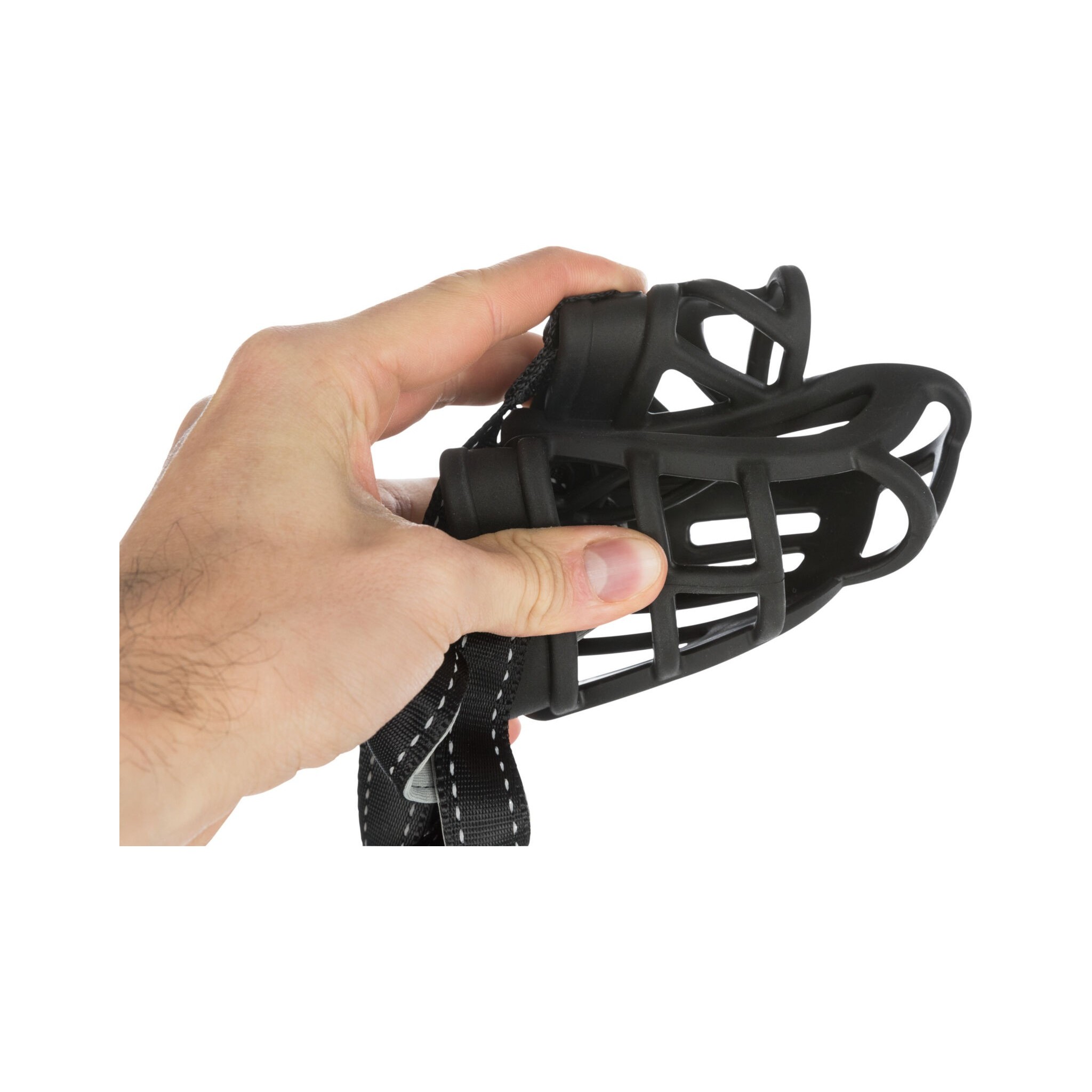 Kaganiec jest wygodny dla psa dzięki ergonomicznemu dopasowaniu. Jest elastyczny i jednocześnie nie traci kształtu. Regulowane paski częściowo podbite neoprenem na czoło i kark pozwalają na dopasowanie kagańca do wymiarów psa. Odblaskowe elementy sprawiają, że pies, jak i jego właściciel są widoczni podczas wieczornych spacerów. Jest bezpieczny dzięki trzykrotnemu mocowaniu. Nie utrudnia psu oddychania, jedzenia i picia. Kaganiec jest łatwy w czyszczeniu.