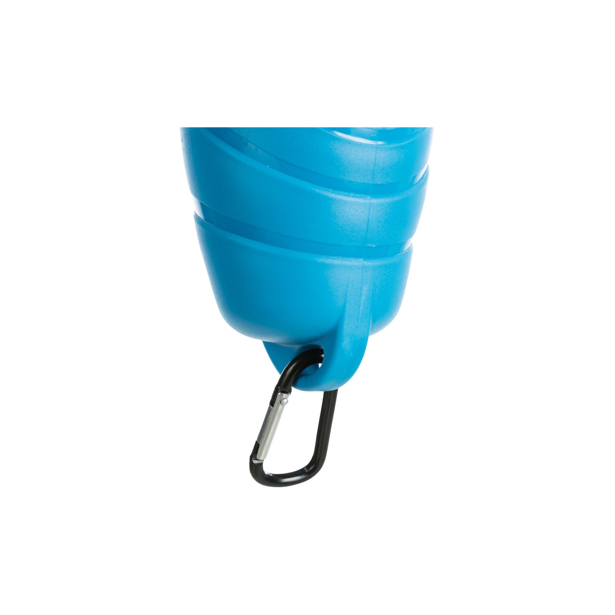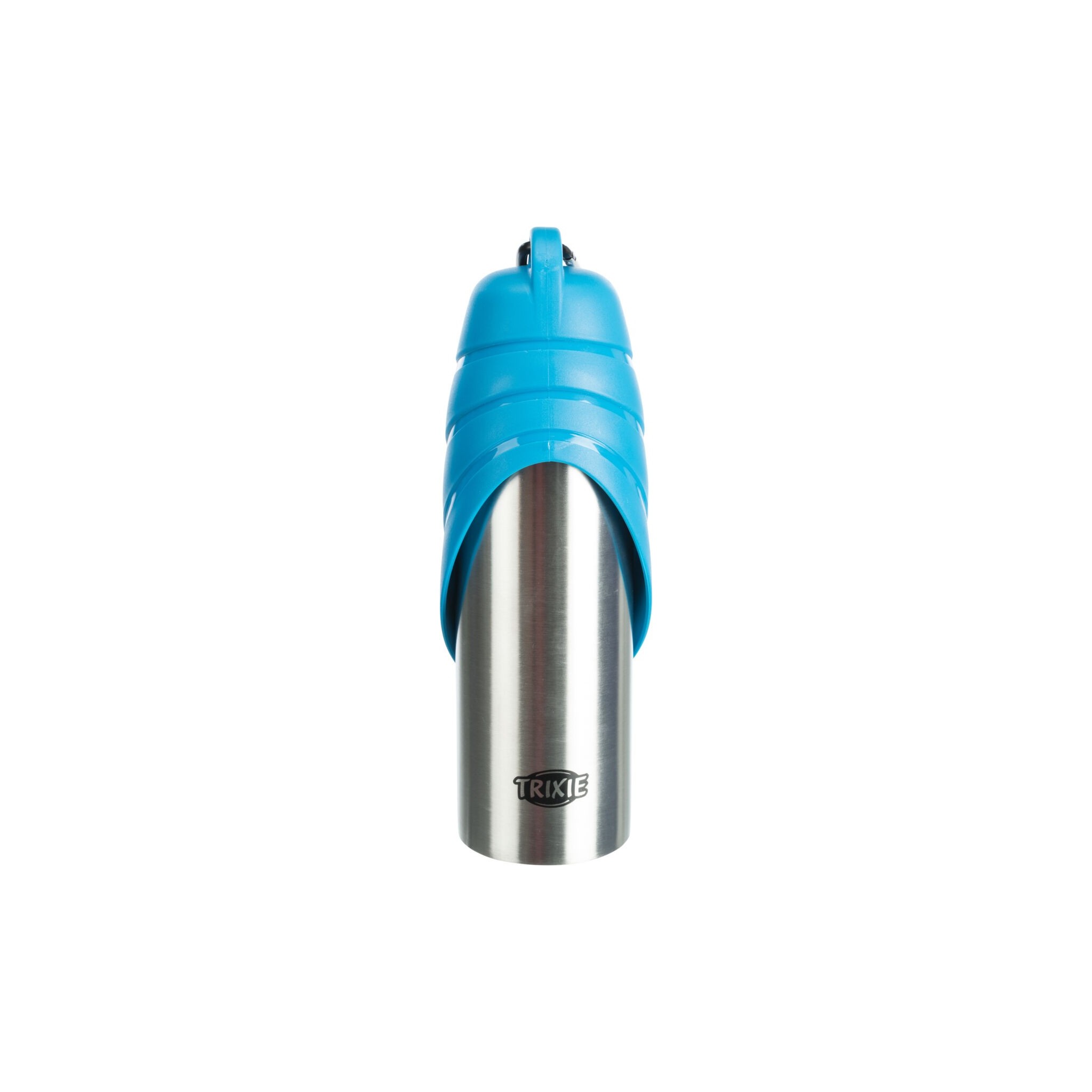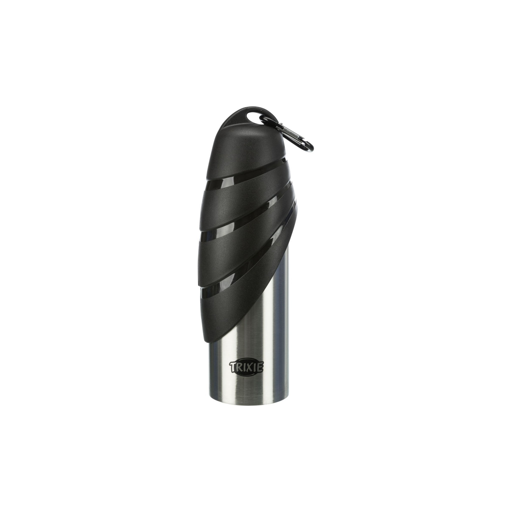 Turystyczna butelka z miską wykonana ze stali nierdzewnej oraz plastiku. Kształt przykrywki umożliwia użycie jej jako miskę w trakcie podróży. Posiada praktyczny haczyk umożliwiający zawieszenie butelki np. na pasek. Kolor wysyłany losowo, zależnie od dostępnej partii towaru.