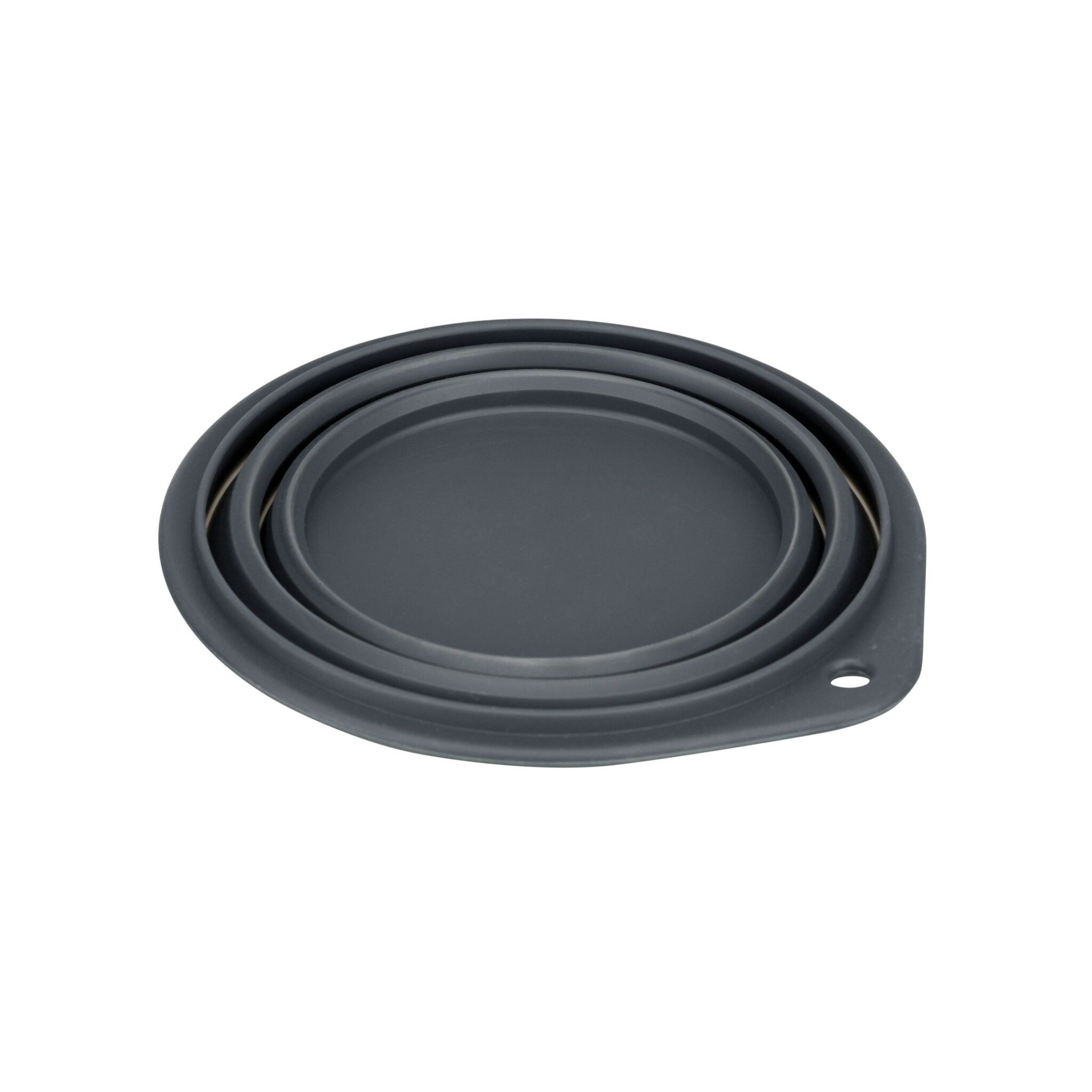 Wygodna, składana miska o pojemności 0,5l i średnicy 14cm, wykonana z trwałego silikonu. Dostępna w różnych kolorach – zależnie od aktualnej partii towaru.