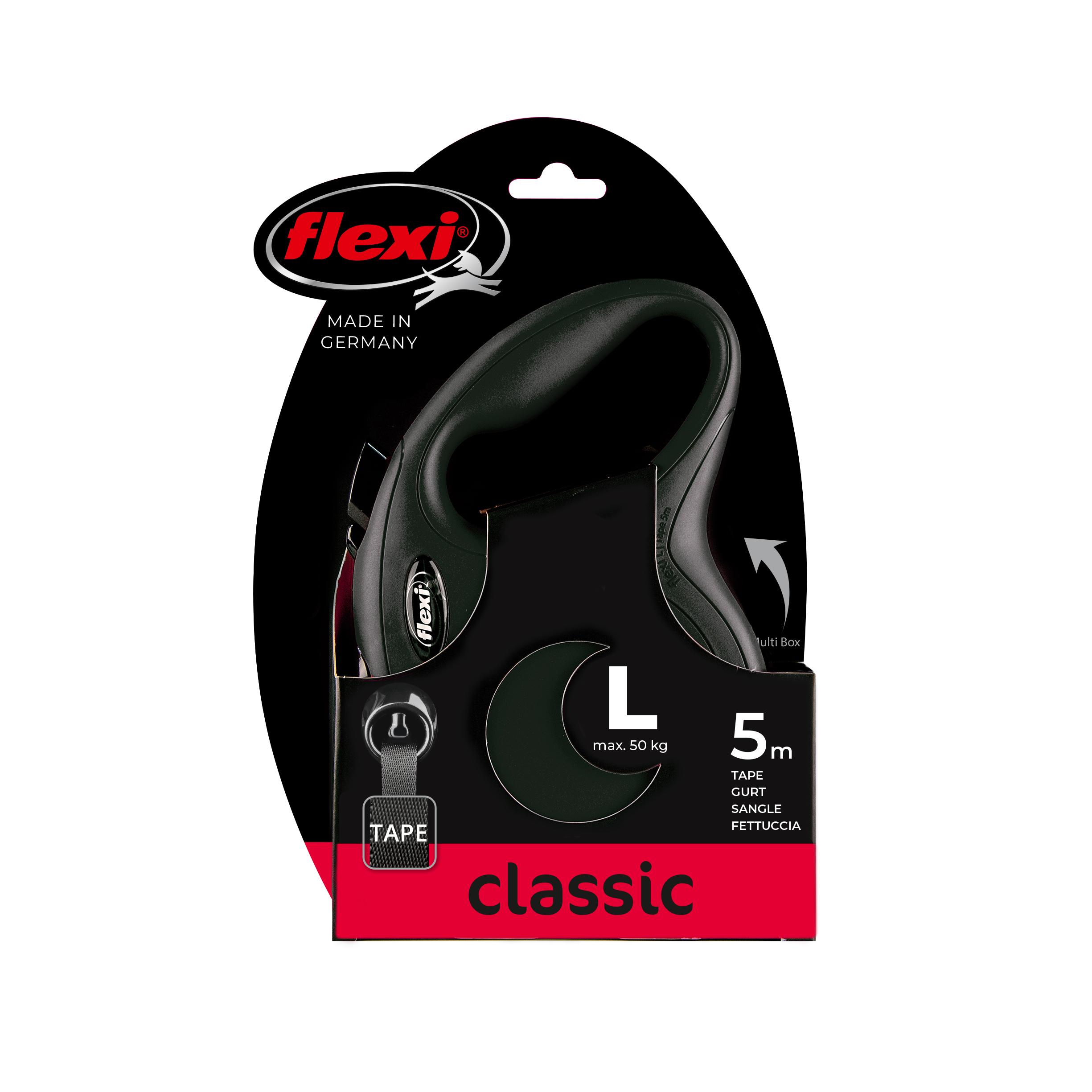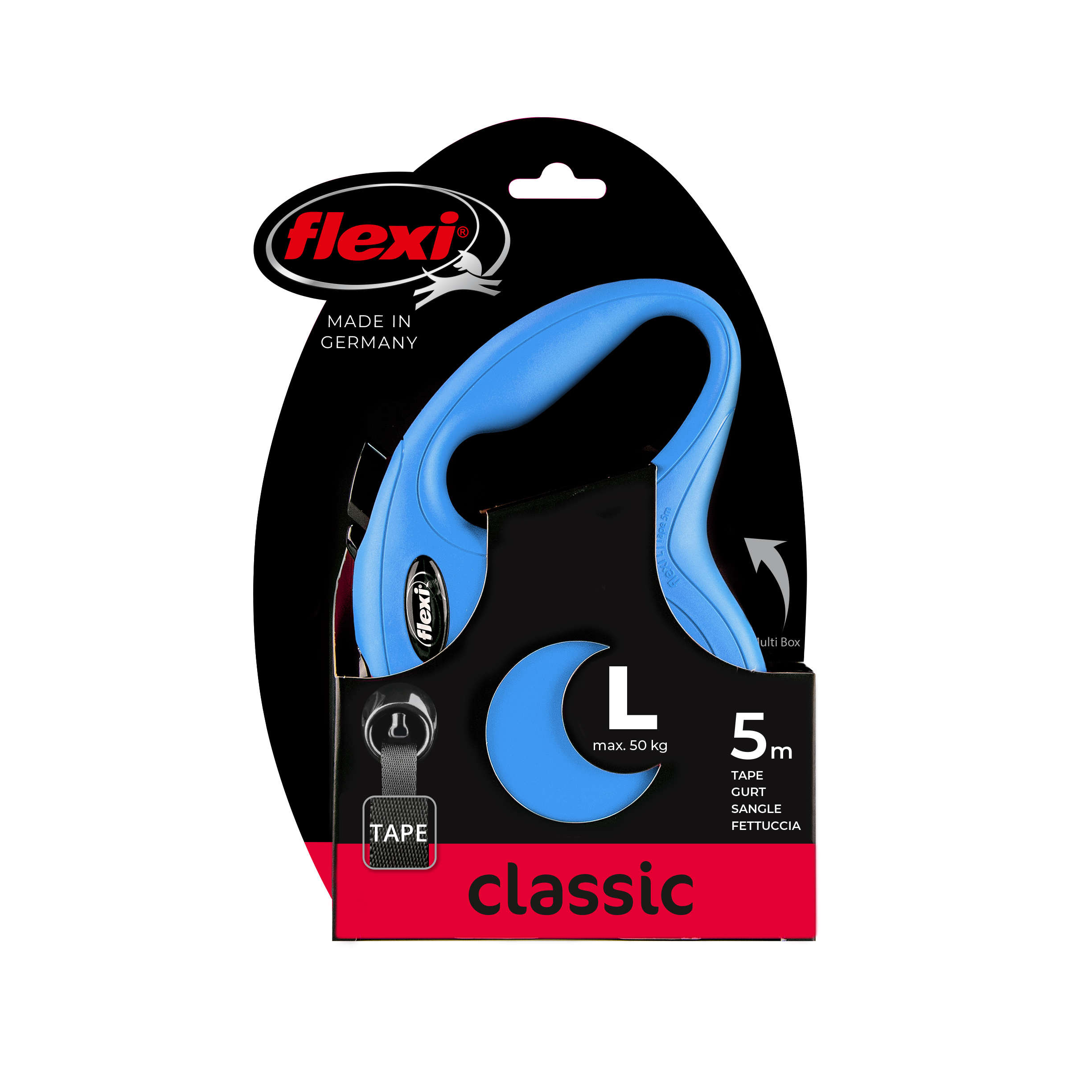 Flexi New Classic to automatyczne smycze, które nigdy nie zwisają, ponieważ zawsze są lekko naciągnięte. Za pomocą wbudowanego systemu hamowania zawsze można mieć wpływ na psa. Ponadto smycz jest blokowana za pomocą dodatkowego przycisku.