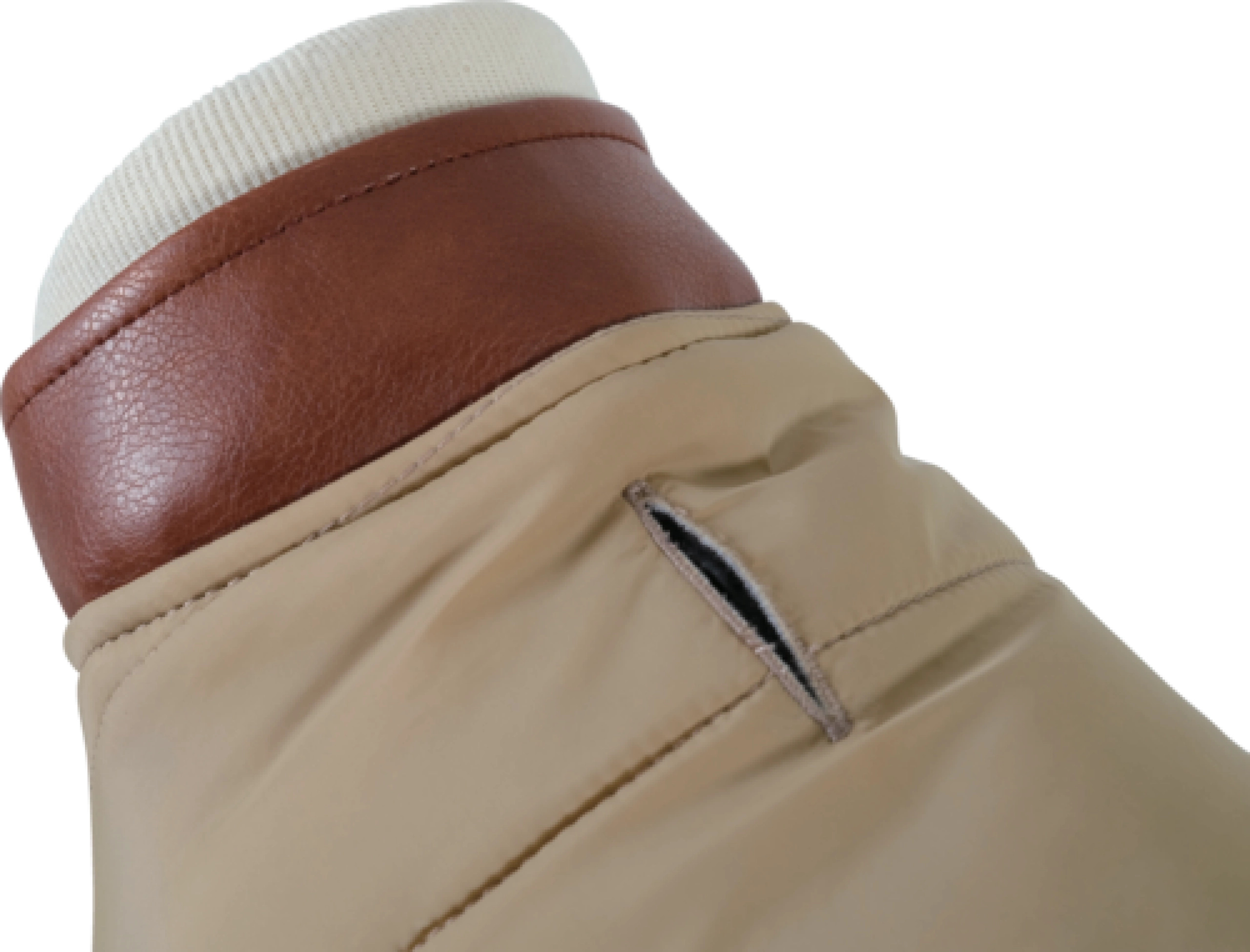 Dzięki ściągaczom i rzepom bez problemu dopasujesz kurtkę do sylwetki psa, a otwory na łapki i smycz gwarantują pełną swobodę ruchu i funkcjonalność. Ozdobna naszywka ze sztucznej skóry dodaje całości eleganckiego charakteru.