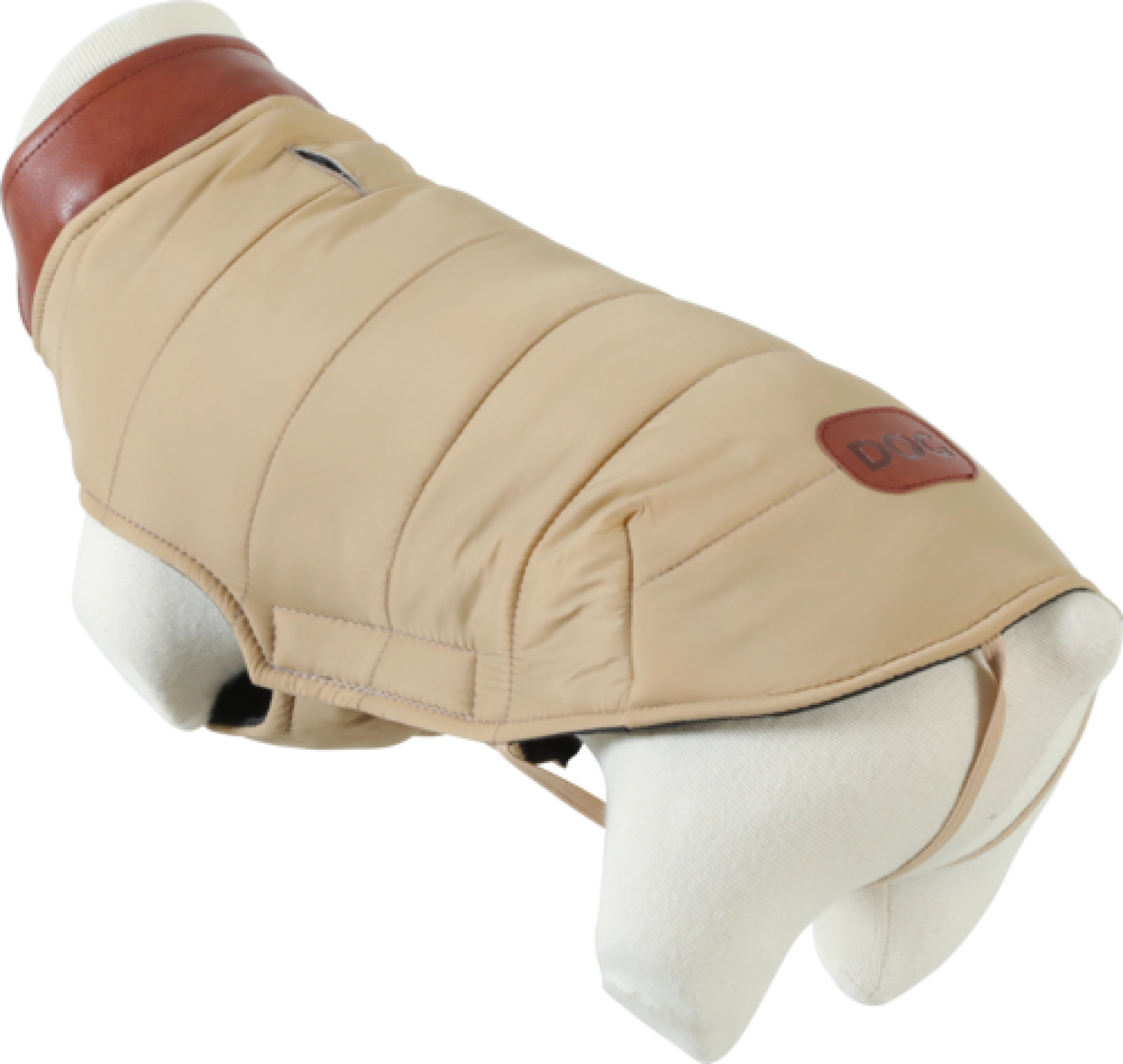 Dzięki ściągaczom i rzepom bez problemu dopasujesz kurtkę do sylwetki psa, a otwory na łapki i smycz gwarantują pełną swobodę ruchu i funkcjonalność. Ozdobna naszywka ze sztucznej skóry dodaje całości eleganckiego charakteru.