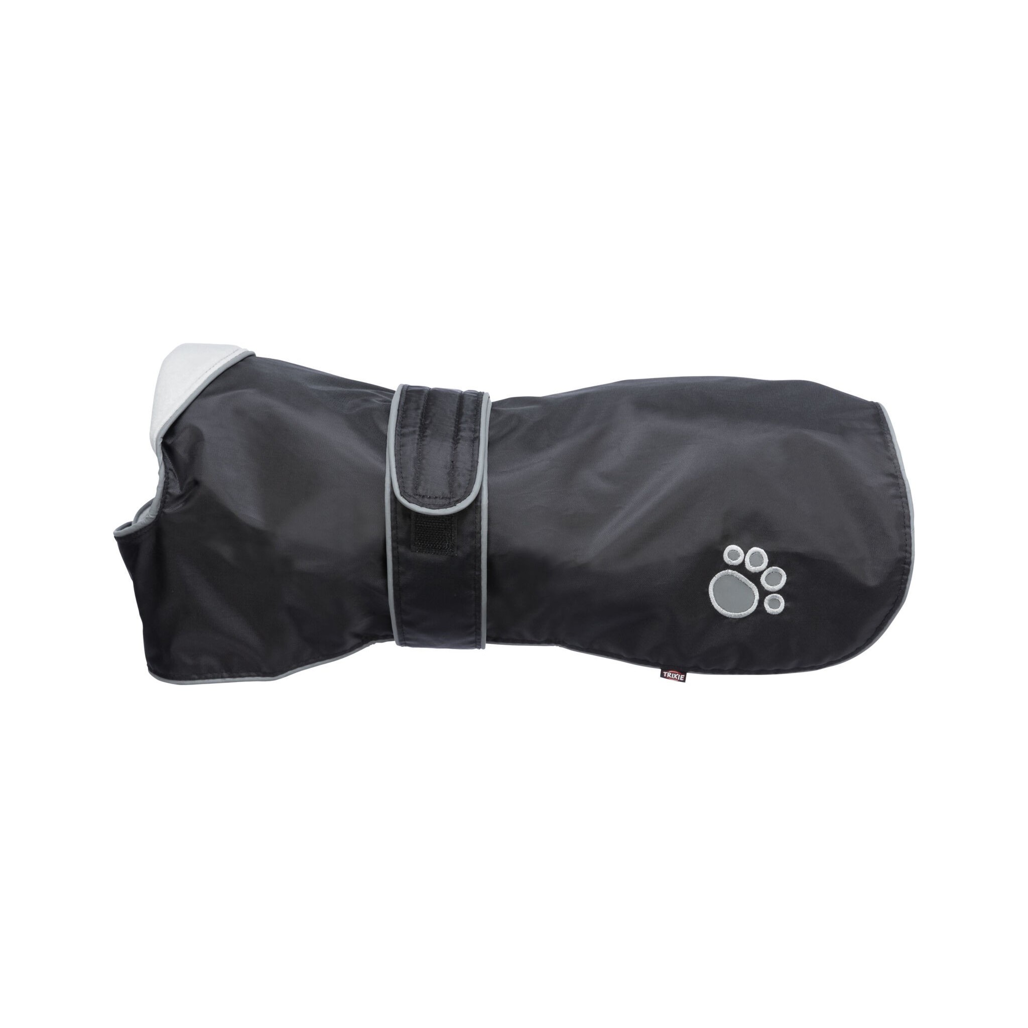 Przeciwdeszczowe, ocieplane polarem ubranko dla psów w kolorze czarnym z elementami odblaskowym. Płaszczyk zapinany na rzep z możliwością regulacji w karku i brzuchu.