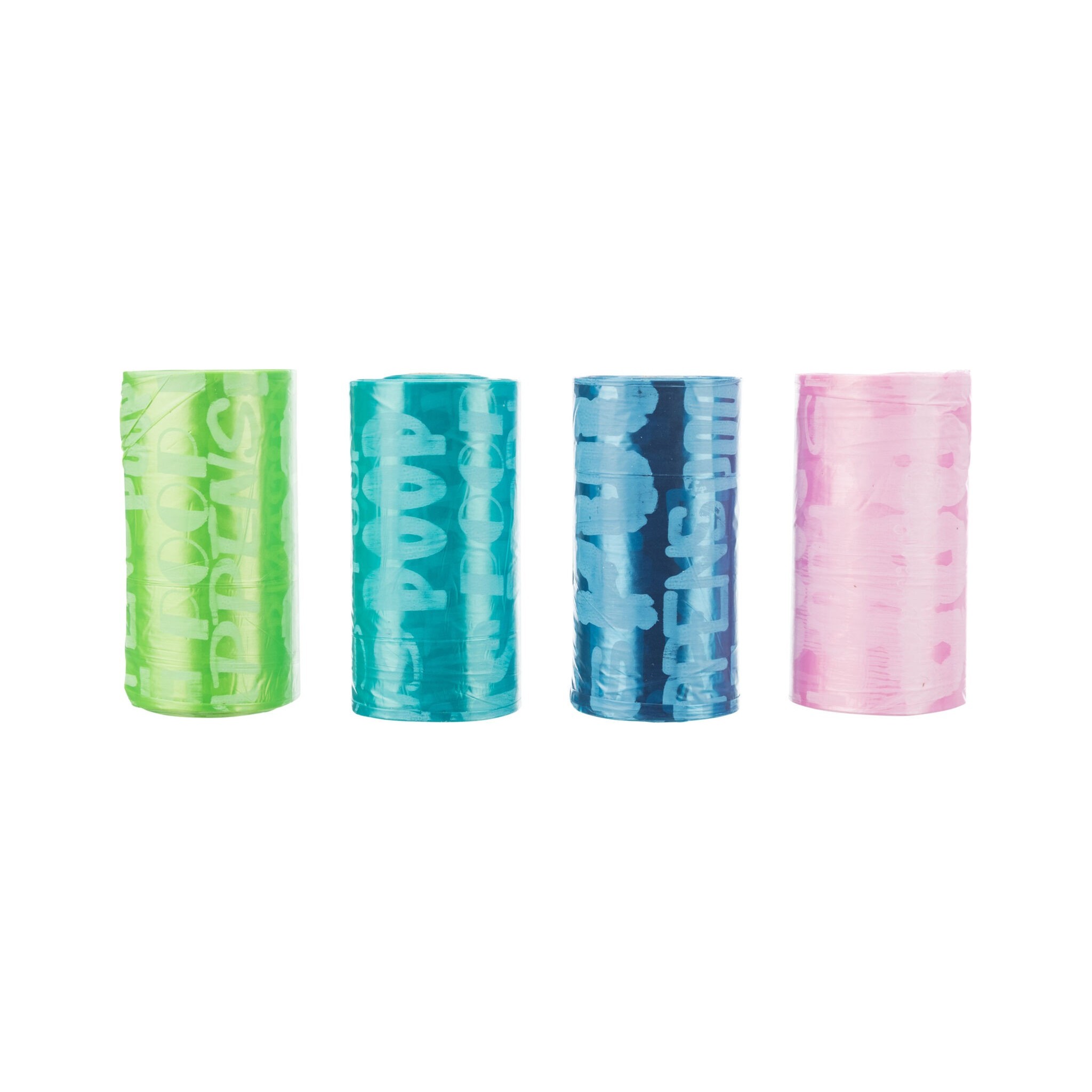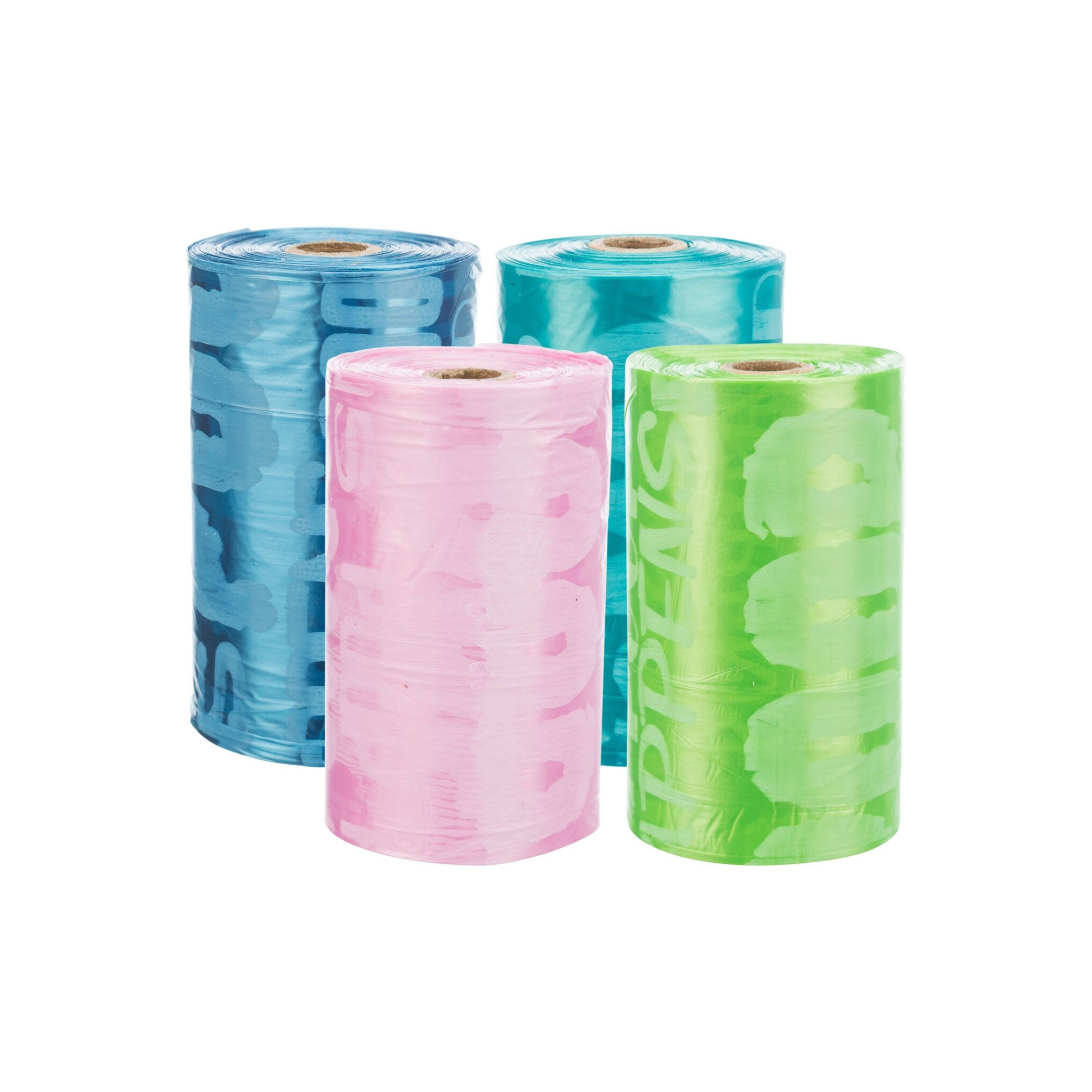 Osiem rolek kolorowych woreczków każda po 20 sztuk.