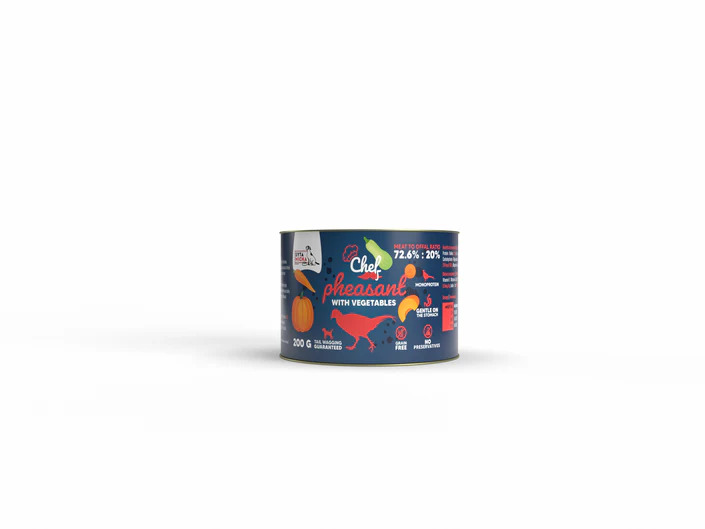 Syta Micha Chef Bażant z warzywami to pełnoporcjowa, bezzbożowa karma mokra. Stworzona dla psów o wrażliwym układzie pokarmowym, seniorów oraz psów z tendencją do nadwagi.