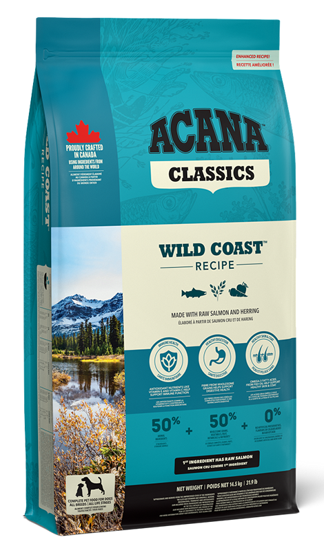 Acana Classics Wild Coast to karma przeznaczona dla psów wszystkich ras, bez względu na wiek (z wyjątkiem szczeniąt dużych ras).