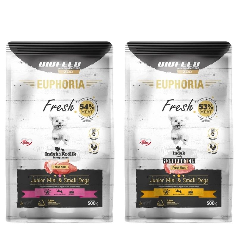Euphoria Fresh Junior XS/S to pełnoporcjowa karma sucha dla szczeniąt ras małych i miniaturowych.