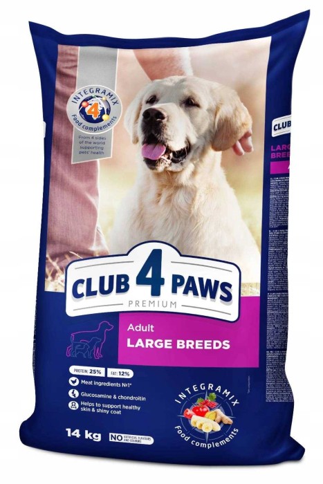 Club 4 Paws Adult Large Chicken to pełnoporcjowa sucha karma premium stworzona specjalnie dla dorosłych psów dużych ras (25–90 kg). Jej zbilansowana receptura zapewnia odpowiednią ilość energii i składników odżywczych, wspierając zdrowie, kondycję oraz witalność czworonoga.