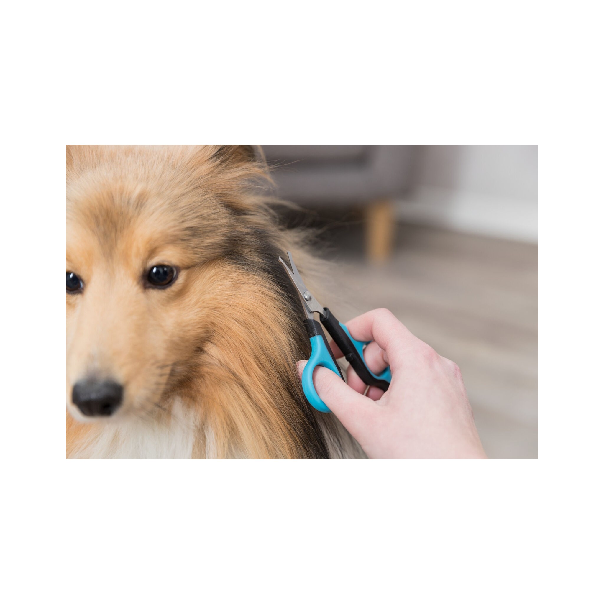 Nożyczki z zaokrąglonymi końcówkami do trudno dostępnych miejsc jak łapki, pyszczek itp. Dzięki specyficznej budowie idealnie nadają się do podcinania sierści między poduszkami łapek.