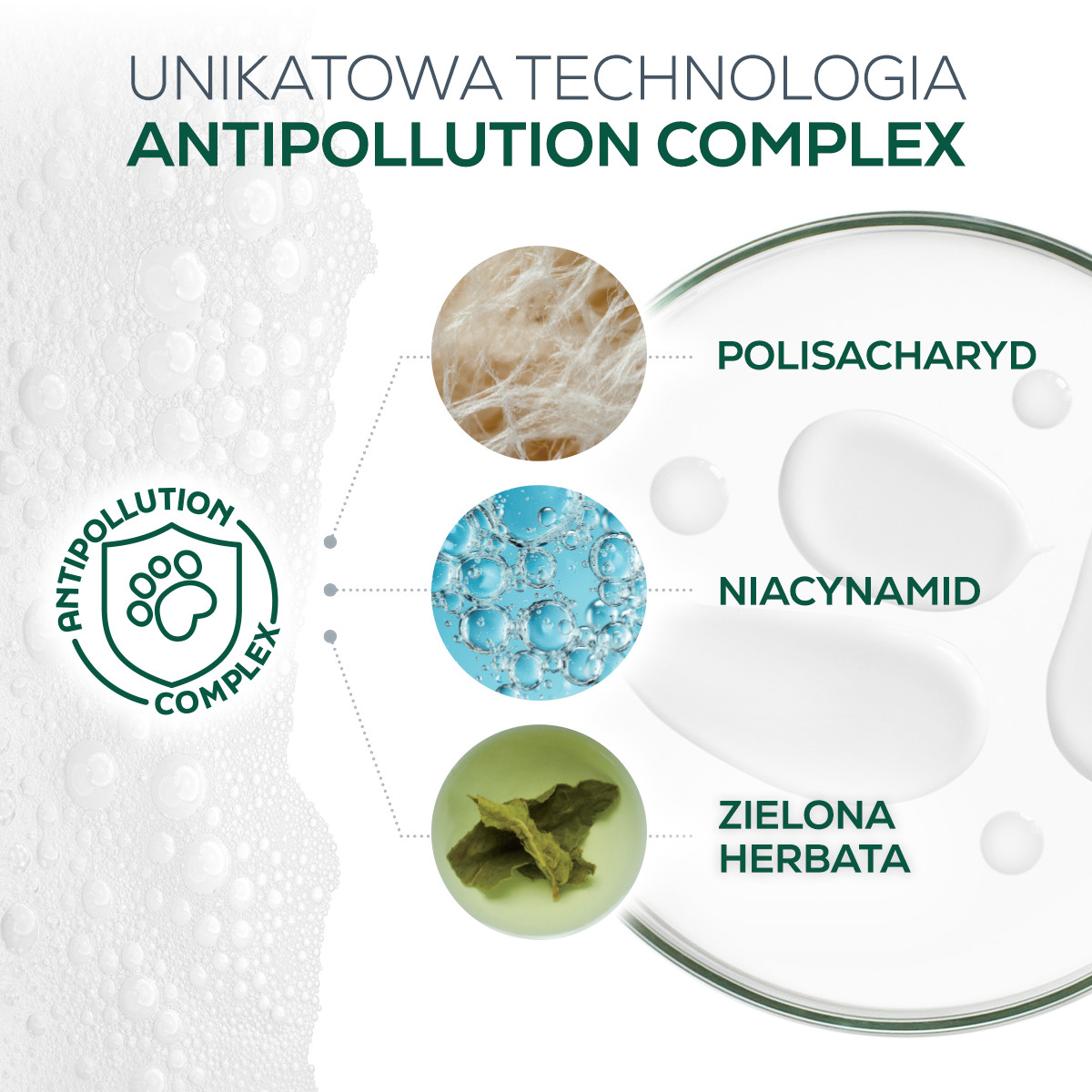 Formuła odżywki zawiera ANTIPOLLUTION COMPLEX, który chroni skórę i sierść przed czynnikami zewnętrznymi, takimi jak zanieczyszczenia atmosferyczne i wolne rodniki.
