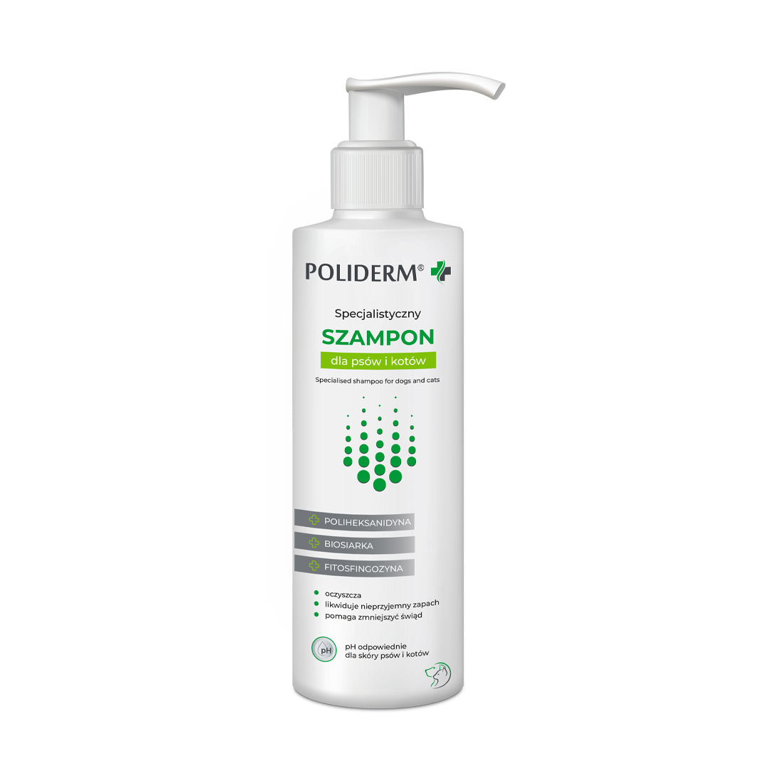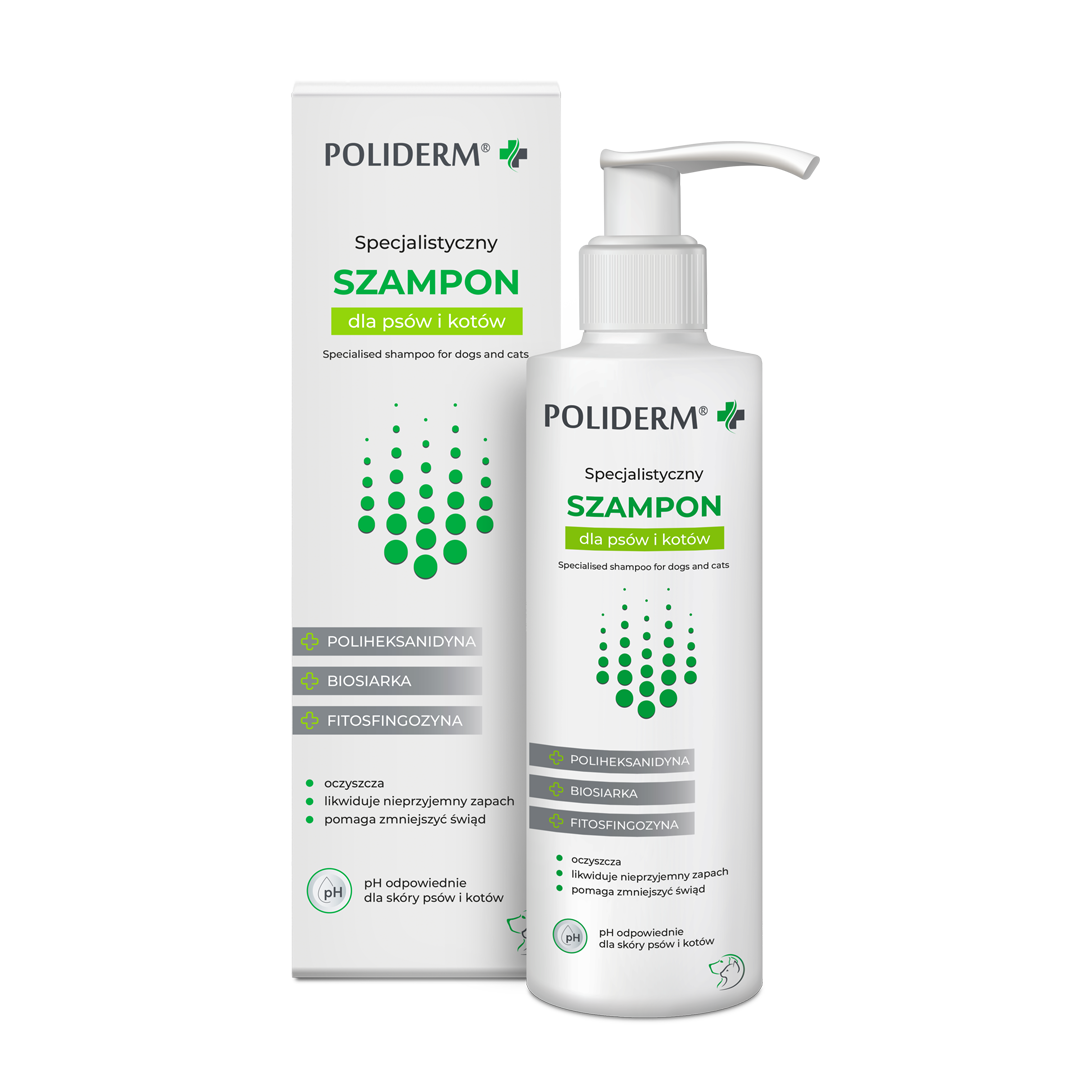 Poliderm szampon to preparat stworzony z myślą o pielęgnacji wrażliwej skóry psów i kotów, skłonnej do łupieżu, dermatoz i stanów zapalnych. Dzięki łagodnej formule o neutralnym pH, szampon skutecznie oczyszcza, nawilża i wspiera regenerację skóry, pozostawiając sierść czystą, miękką i lśniącą.