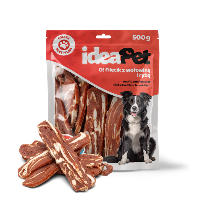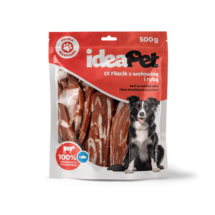 Filecik z wołowiną i rybą to wyjątkowa przekąska łącząca wysokiej jakości składniki: wołowinę, mięso z kaczki, dorsza oraz płuca wołowe. Wołowina wspiera rozwój mięśni i dostarcza niezbędnych witamin z grupy B, a lekkostrawne płuca wołowe są bogate w minerały, wspomagając prawidłowe funkcjonowanie układu pokarmowego. Mięso z kaczki dostarcza białko i zdrowe kwasy tłuszczowe, natomiast dorsz, źródło kwasów omega-3, wspiera zdrową skórę i lśniącą sierść. Delikatna forma filecików ułatwia gryzienie, dzięki czemu przysmak doskonale sprawdza się jako nagroda lub mała przyjemność w ciągu dnia.