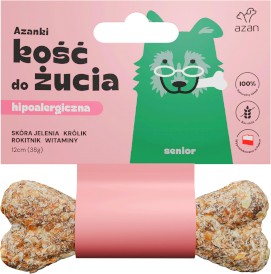 Azanki Kość do żucia SENIOR ze skóry jelenia z królikiem, rokitnikiem i witaminami 12cm to przysmak dla psów starszych wszystkich ras.