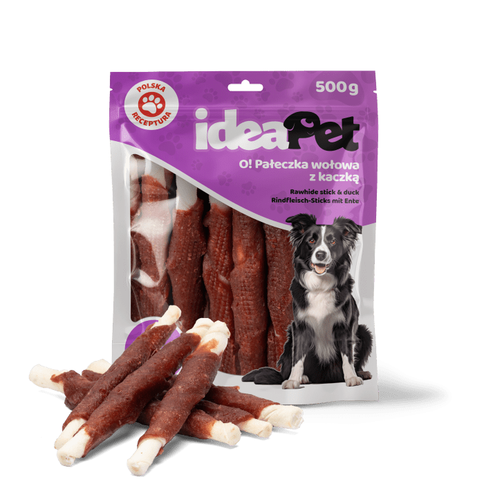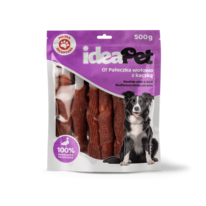 Skład: Pierś z kaczki 50%, skóra wołowa 40,9%, białko roślinne, skrobia kukurydziana, gliceryna
