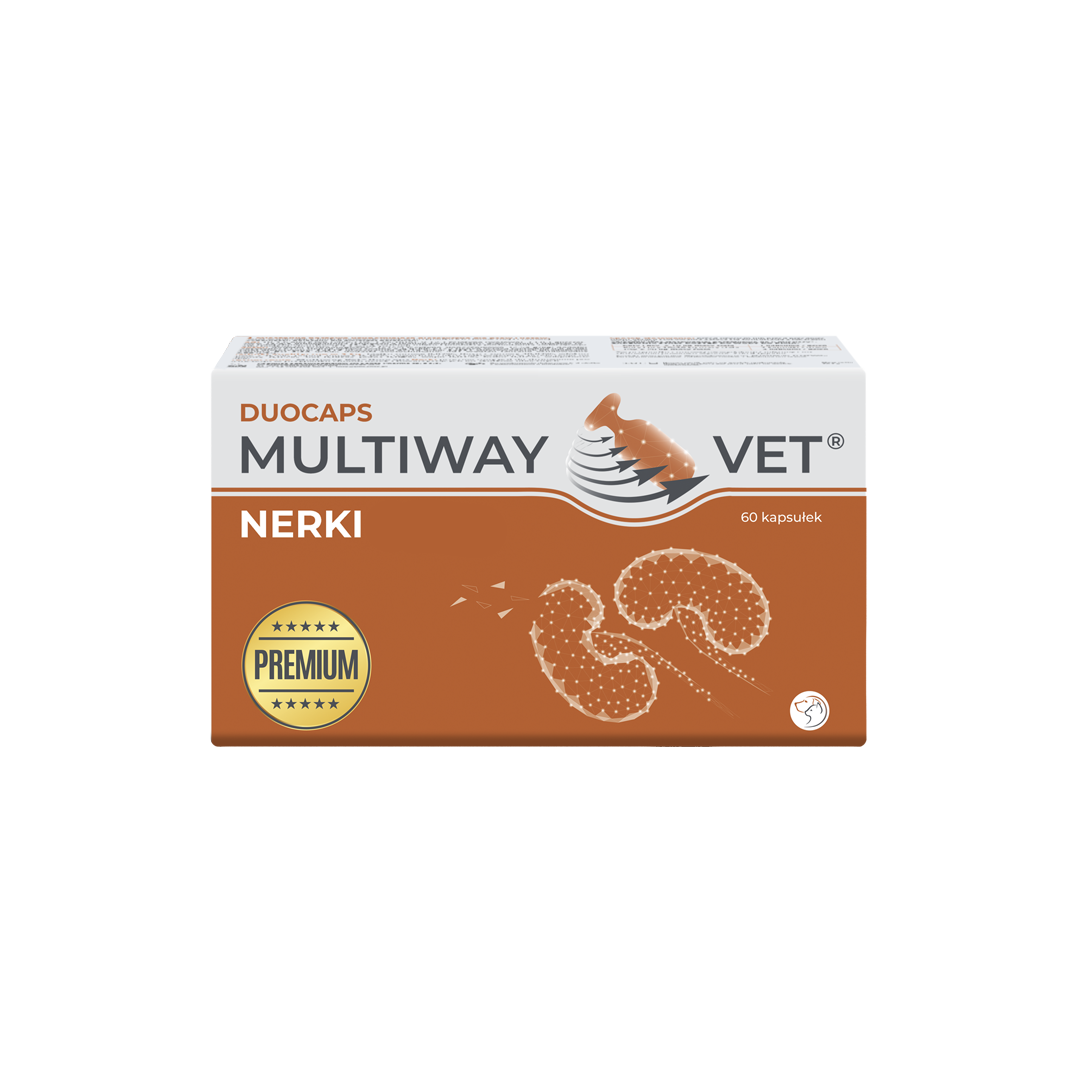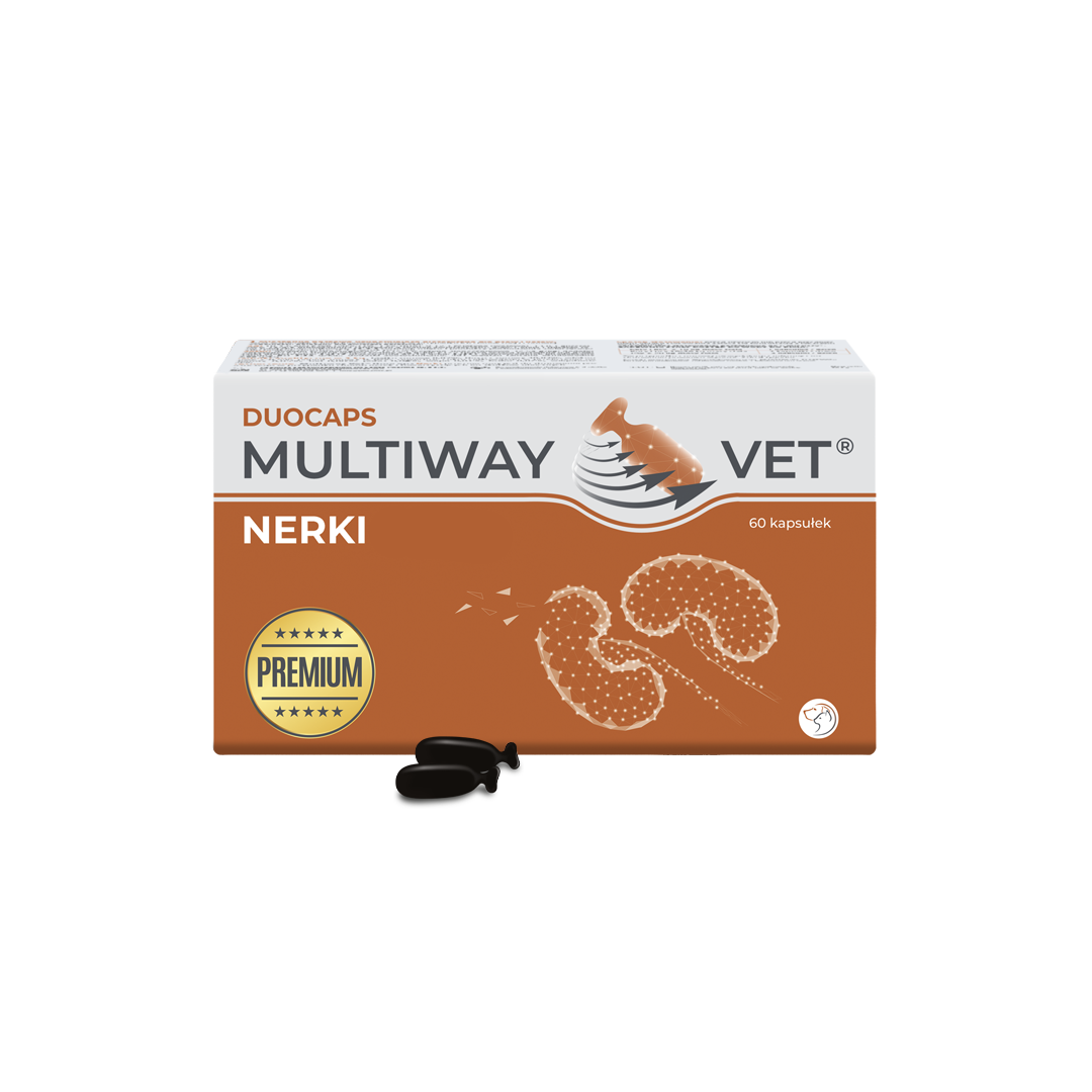 Multiway Vet Duocaps Nerki to specjalistyczny preparat uzupełniający dietę psów i kotów, opracowany w celu wspierania prawidłowego funkcjonowania nerek w przebiegu chorób przewlekłych i ostrych.
