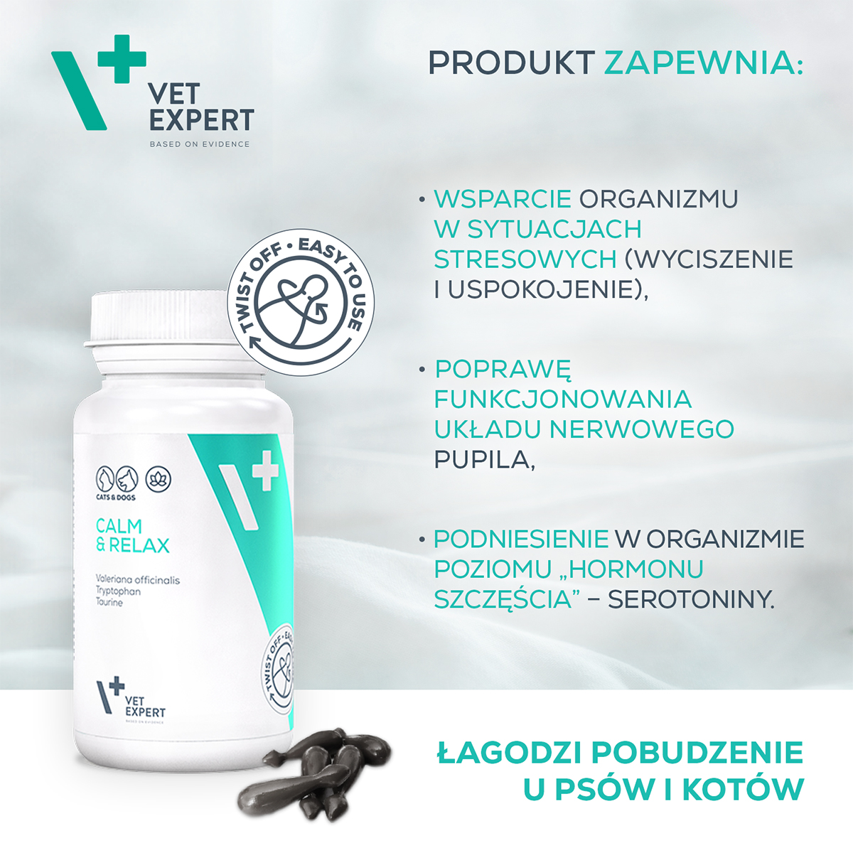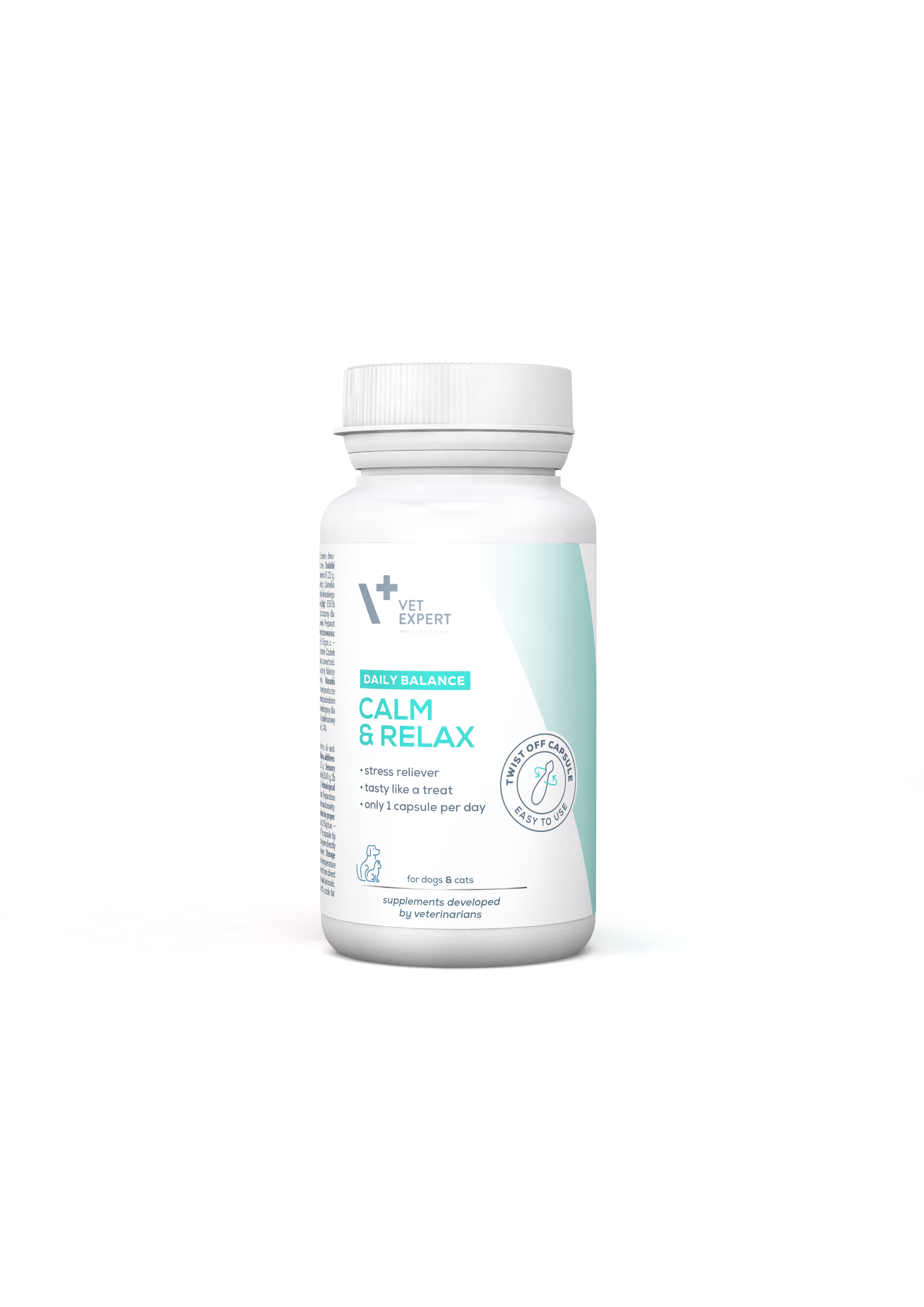 Calm & Relax to preparat wspomagający łagodzenie objawów stresu oraz pobudzenia u psów i kotów.